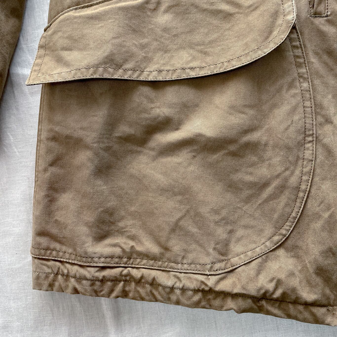 コットン100%のボディに、薬莢入れ付きのポケットや背面のゲームポケットを備えた実用的な一着。