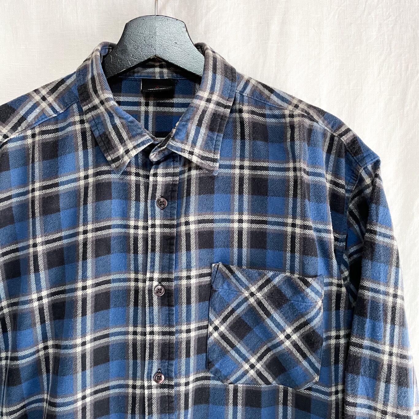 90s チェック柄 長袖 プリント ネルシャツ プリネル M ブルー 好配色 アメカジ 50s 60s