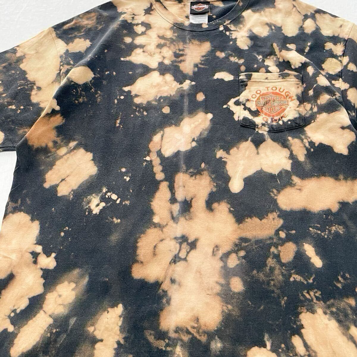 激レア ハーレーダビットソン タイダイ ビッグプリント ポケット Tシャツ XL Hanes ボディ ブラック バイク ライダース