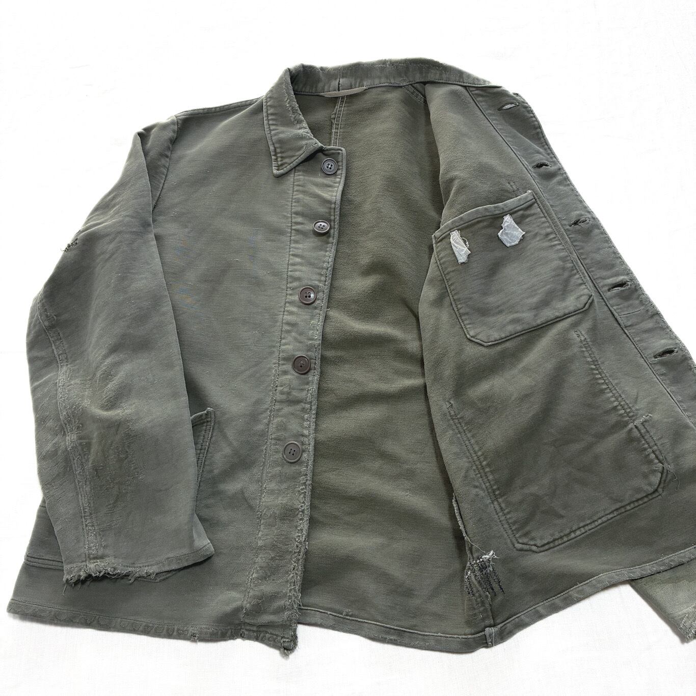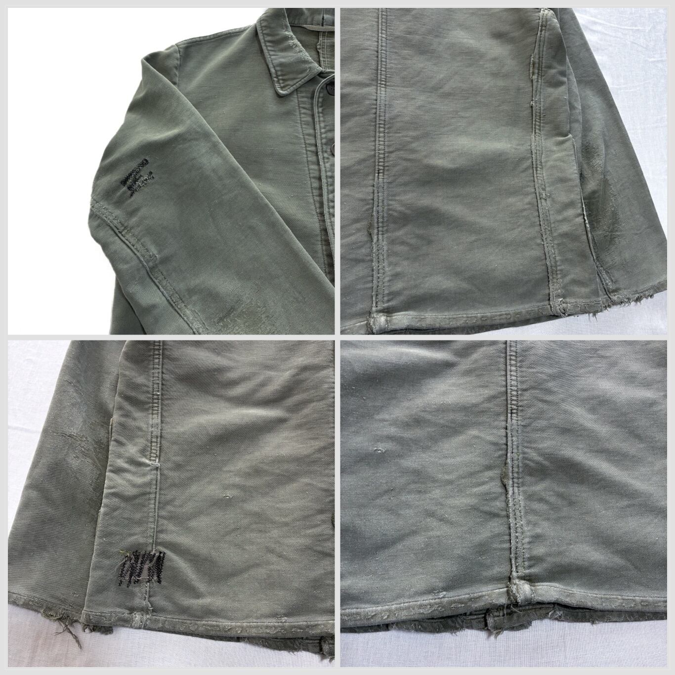 60s ユーロ ヴィンテージ モールスキン ワークジャケット L相当 カーキ ヨーロッパ古着 フランス フレンチ カバーオール