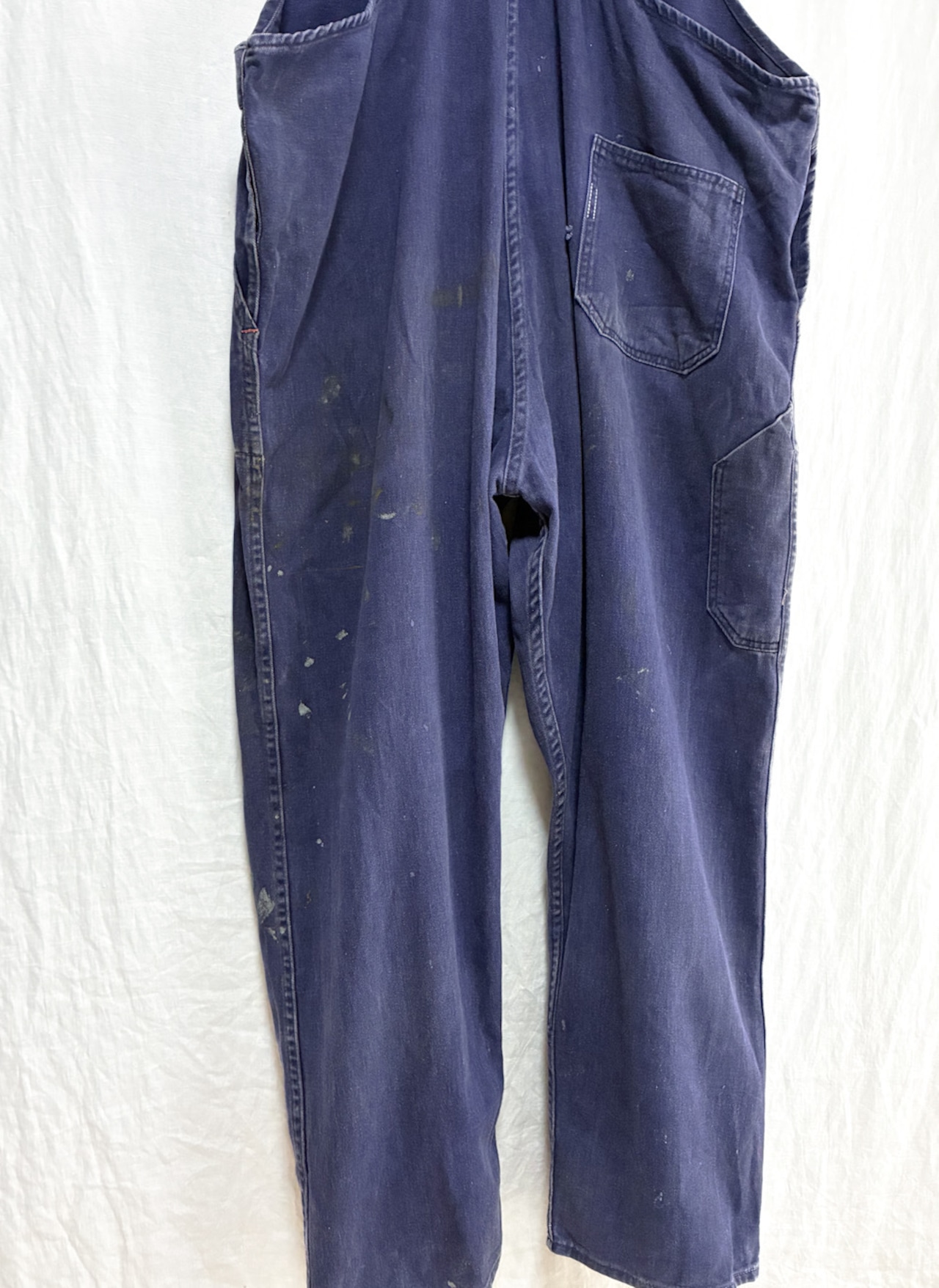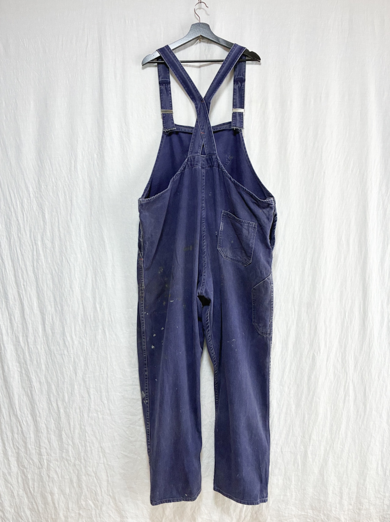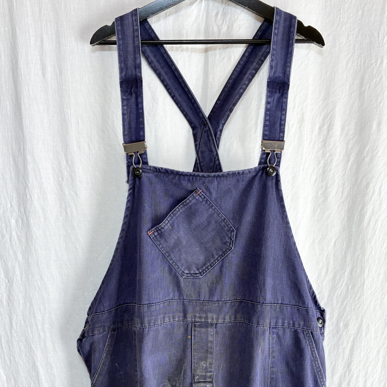 60s ユーロ ヴィンテージ 斜めポケット オーバーオール 48 ナス紺 バイカー DIY フランス軍 イギリス軍 ドイツ軍