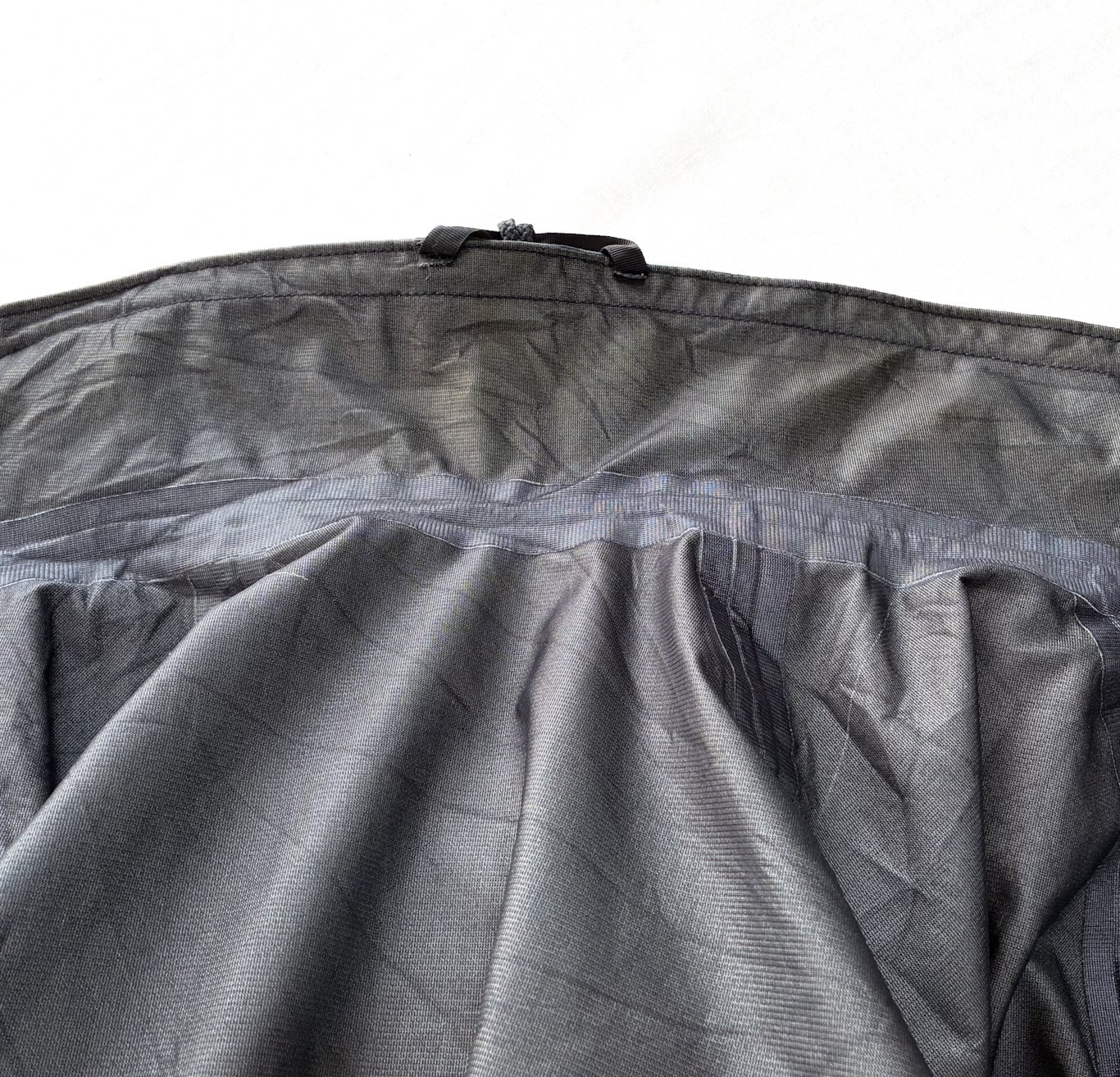 フードは襟に収納可能、ウエスト、裾にはドローコード入りになります。