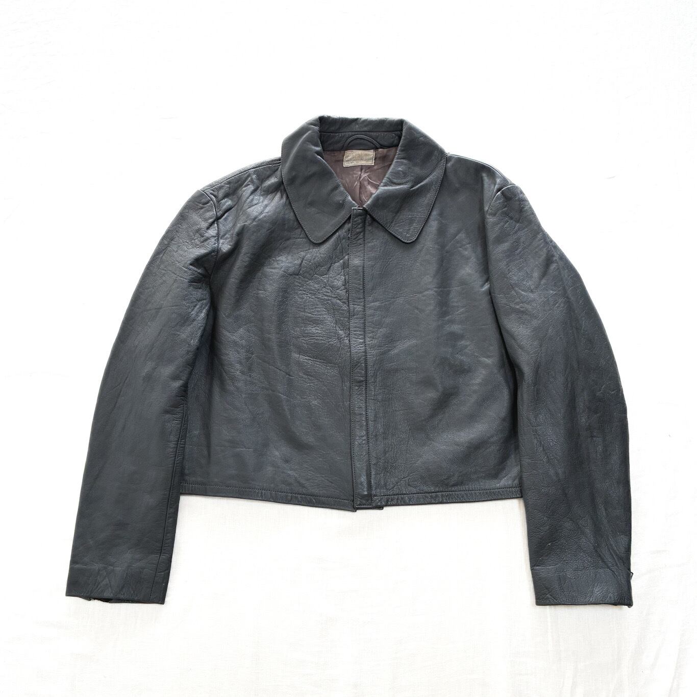 希少 ドイツ軍 短丈 サブマリン レザージャケット 54 ブルゾン グレー 変型デザイン フランス軍