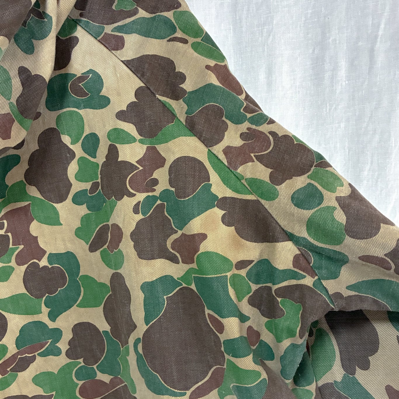 ヴィンテージならではの味わい深い迷彩パターンが存在感を放つ、コーディネートの主役になる一着です。