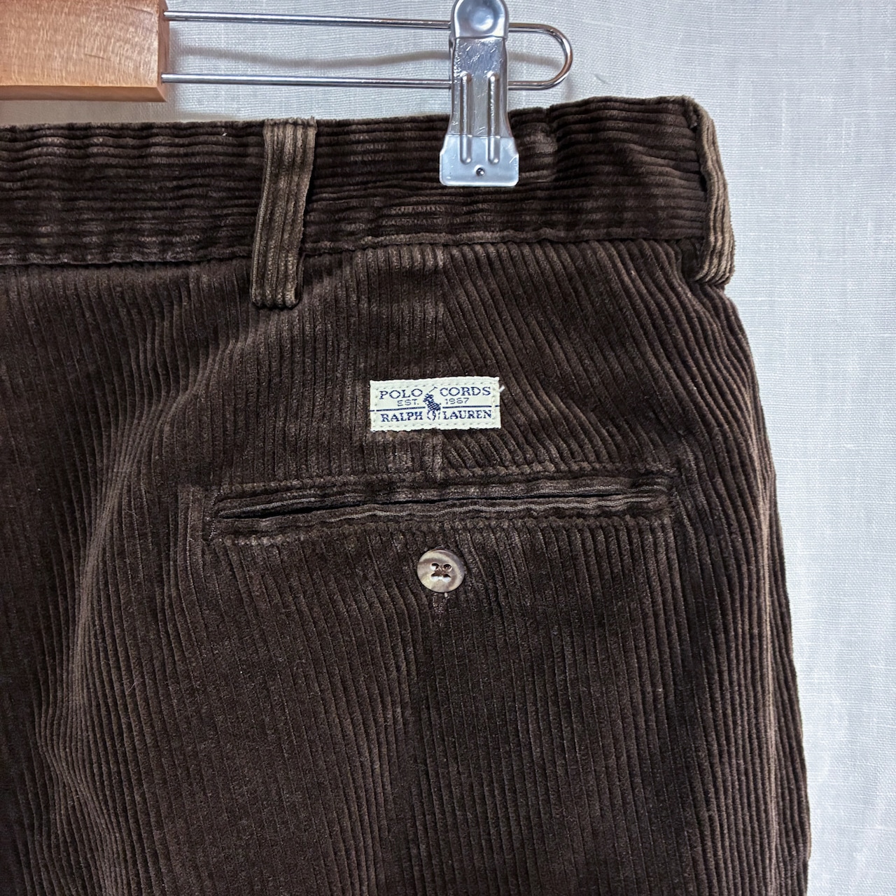 90s ラルフローレン ANDREW 2タック コーデュロイパンツ W36 L30 ブラウン ワイドシルエット