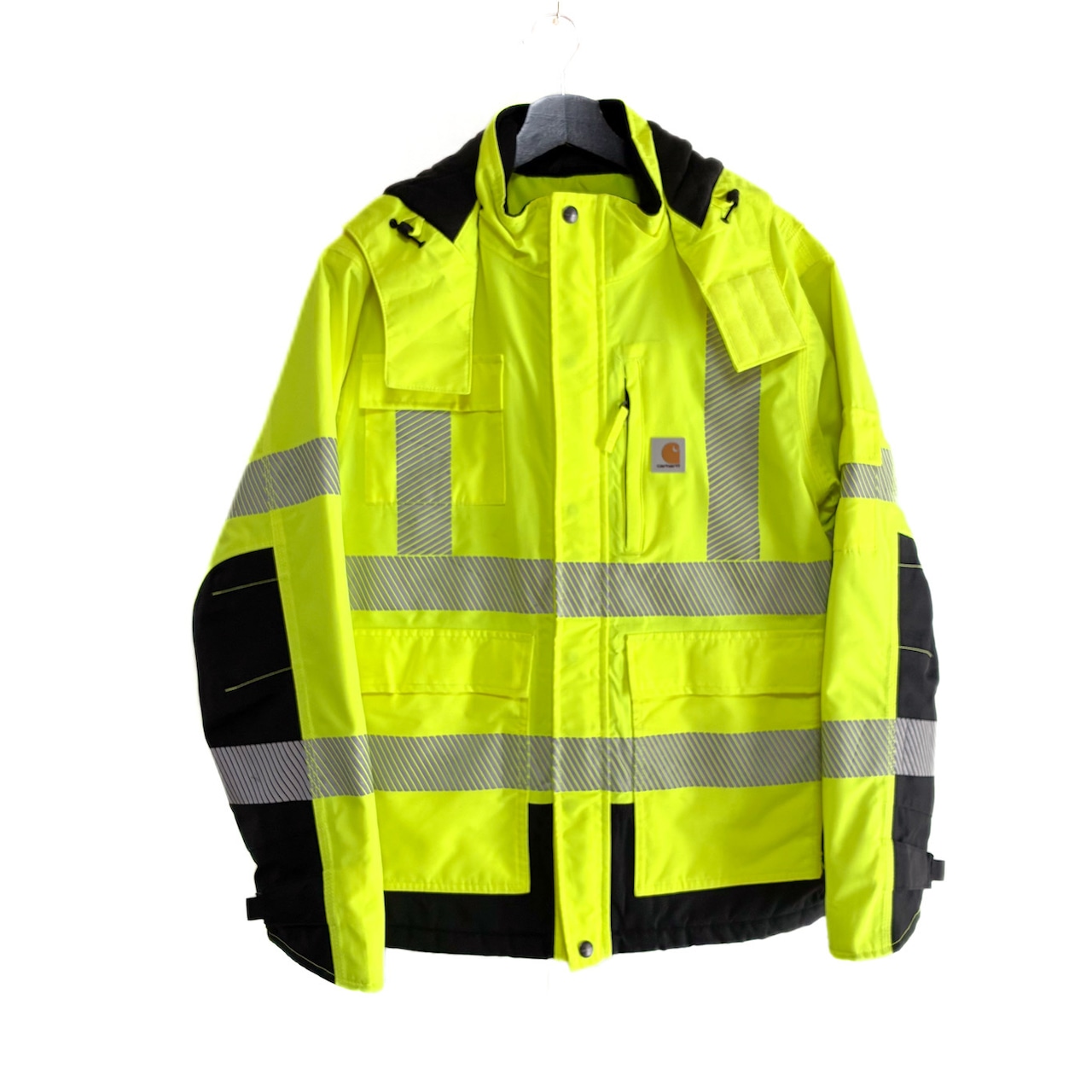 希少 良品 Carhartt カーハート リフレクター 蛍光 イエロー ジップアップ パーカー 消防士