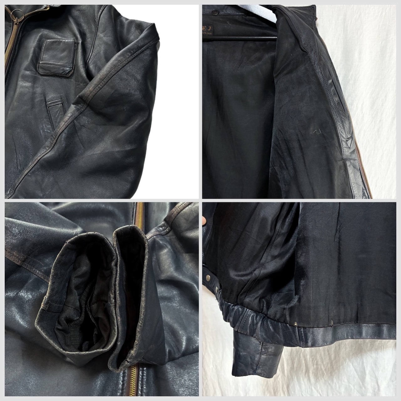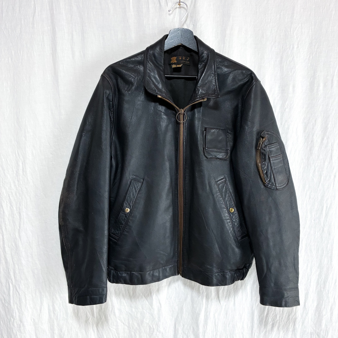 フランス軍 パイロット レザー フライトジャケット 96L ダークネイビー ドイツ軍 イギリス軍 RAF コルビジェ