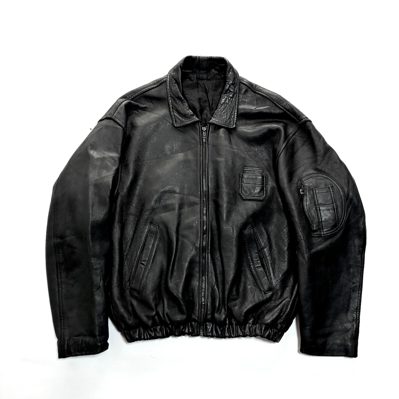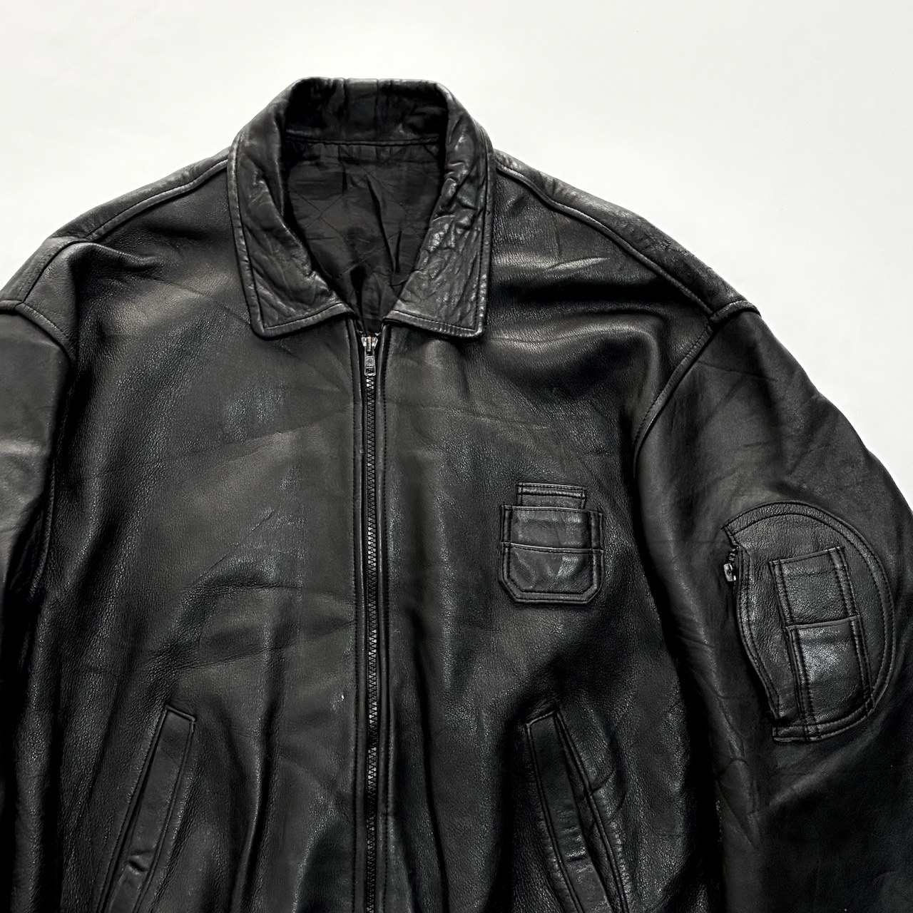 希少 ブラック フランス軍 パイロット レザー フライトジャケット XL〜XXL ドイツ軍 イギリス軍 RAF コルビジェ