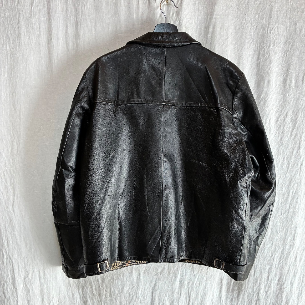 50s ユーロ ヴィンテージ レザー スポーツジャケット L相当 ライダース モーターサイクル 40s