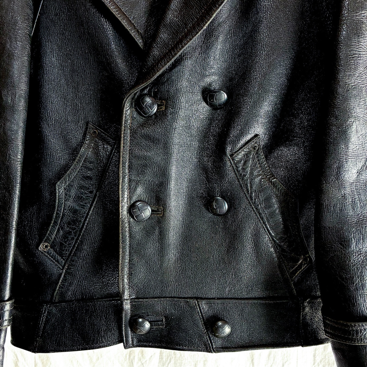 50s ユーロ ビンテージ ダブルブレスト レザー ライダースジャケット L 短丈 ドイツ軍 フランス軍 モーターサイクル
