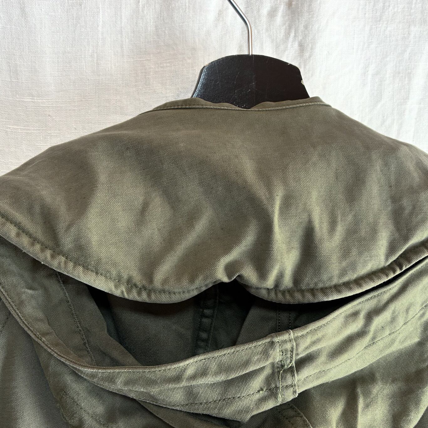 【Condition】 襟に薄汚れ、フードドローコードとトップボタンに欠損、若干のスレ、小キズ、左袖にワッペン取り外し跡あり。(目立たない程度です。)ございます。着用感ございますが大きなダメージなくまだまだご愛用いただけます。