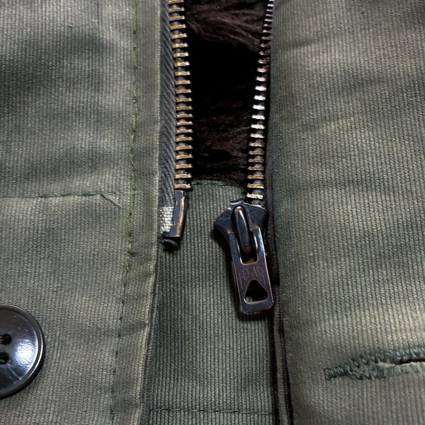 フロントはボタンとジッパーの二重構造、ジッパーはフランス軍ならではのECLAIR社製が付きます。
