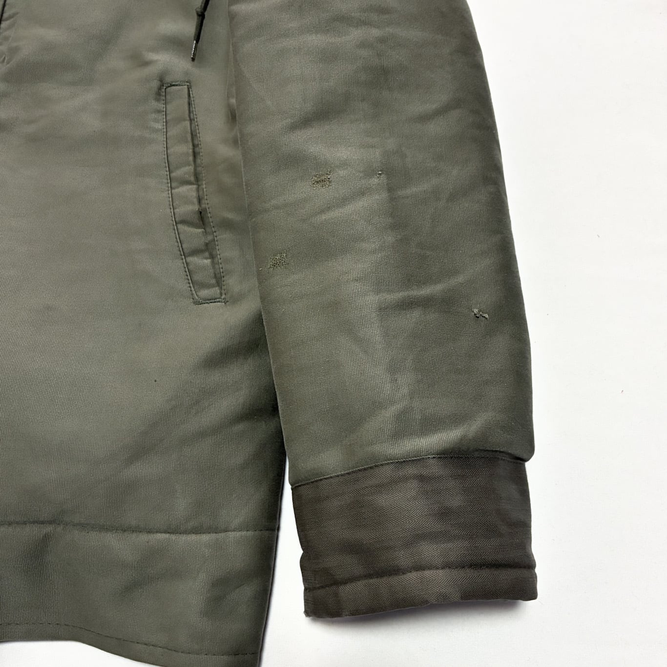 【Condition】 美品 左袖にリペア、小キズ、袖先にスレキズ、背面左下部に若干の汚れございます。その他ダメージなどは見受けられず全体的にグッドコンディションです。