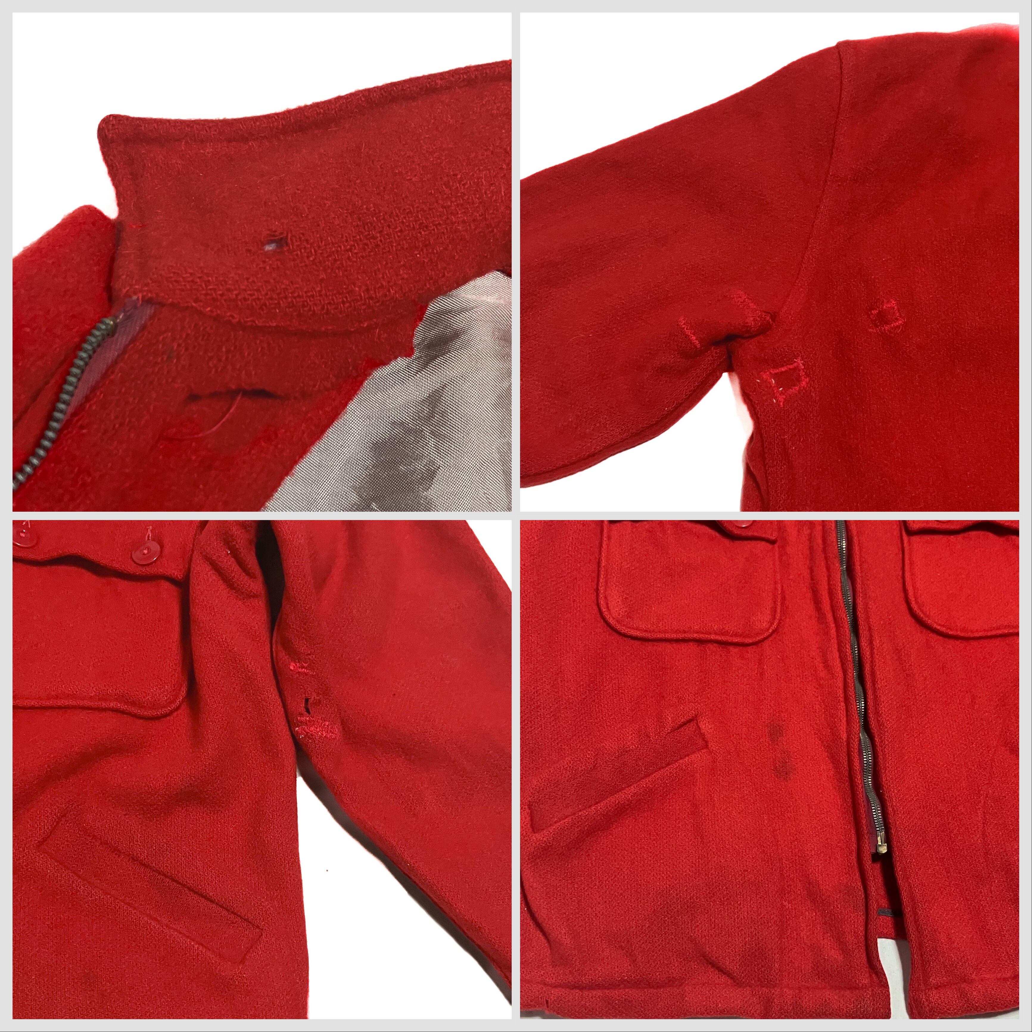【Condition】 フロント下部に汚れ、背面左脇付近にリペア、右袖肘内側にリペアとダメージ、襟にダメージあり。着用感ございますが良いビンテージの雰囲気です。