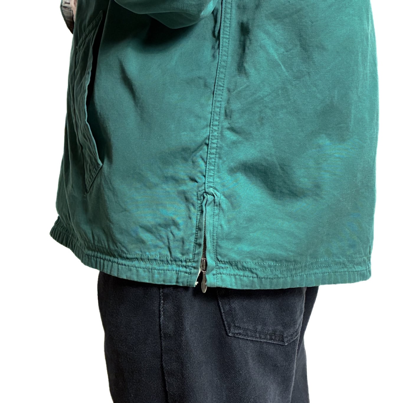 【Condition】 汚れが箇所、袖先に付くベルトが欠損していますが着用には問題ありません。右サイドジッパー持ち手が途中で折れていますが問題なく開閉可能です。ヤブレなどダメージは見受けられずまだまだご愛用いただけます。