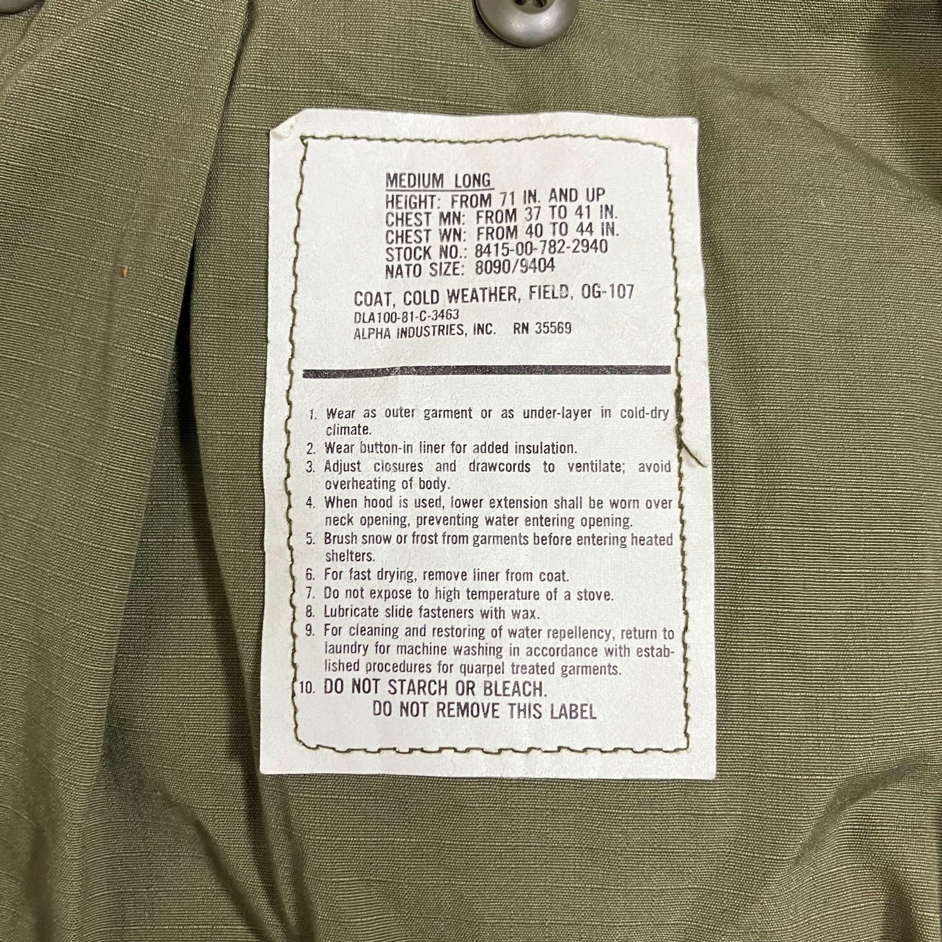 美品 80s 米軍 実物 3rd M65 ブラスジップ フィールドジャケット M-L ミリタリー ヴィンテージ M43 M47 60s 70s