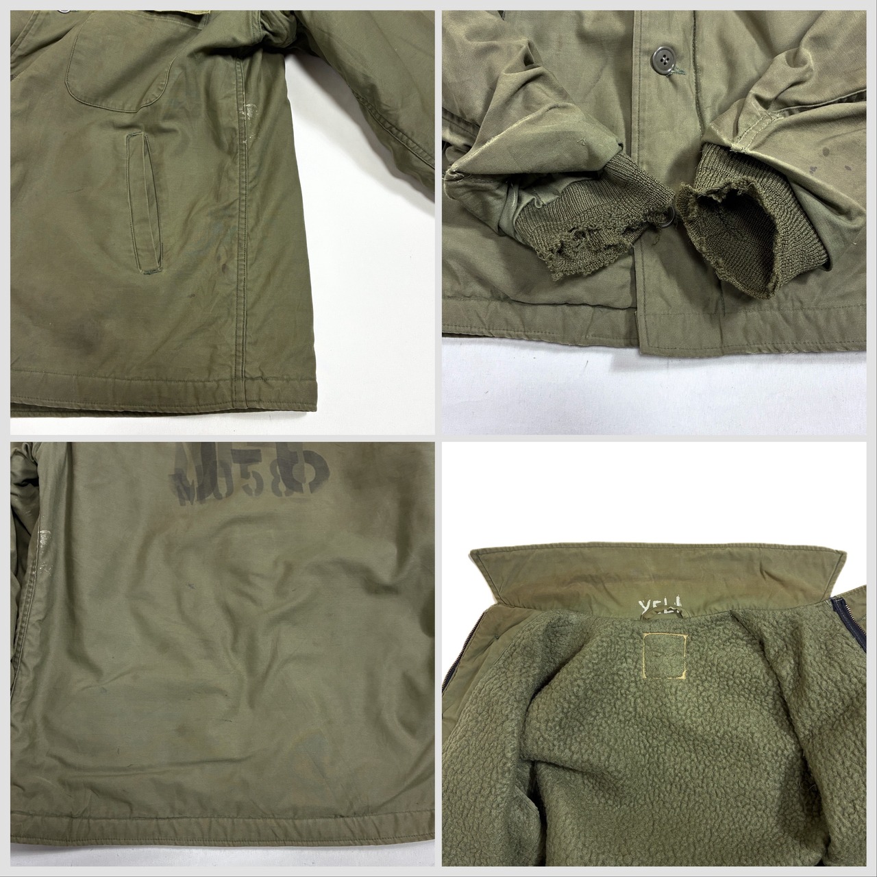 【Condition】 胸ポケットボタン塗装の剥がれ、ボディーに汚れ、リブにダメージ、フロントジップに変更、サイドアジャスターが欠損しています。その他ダメージなくまだまだご愛用いただけます。