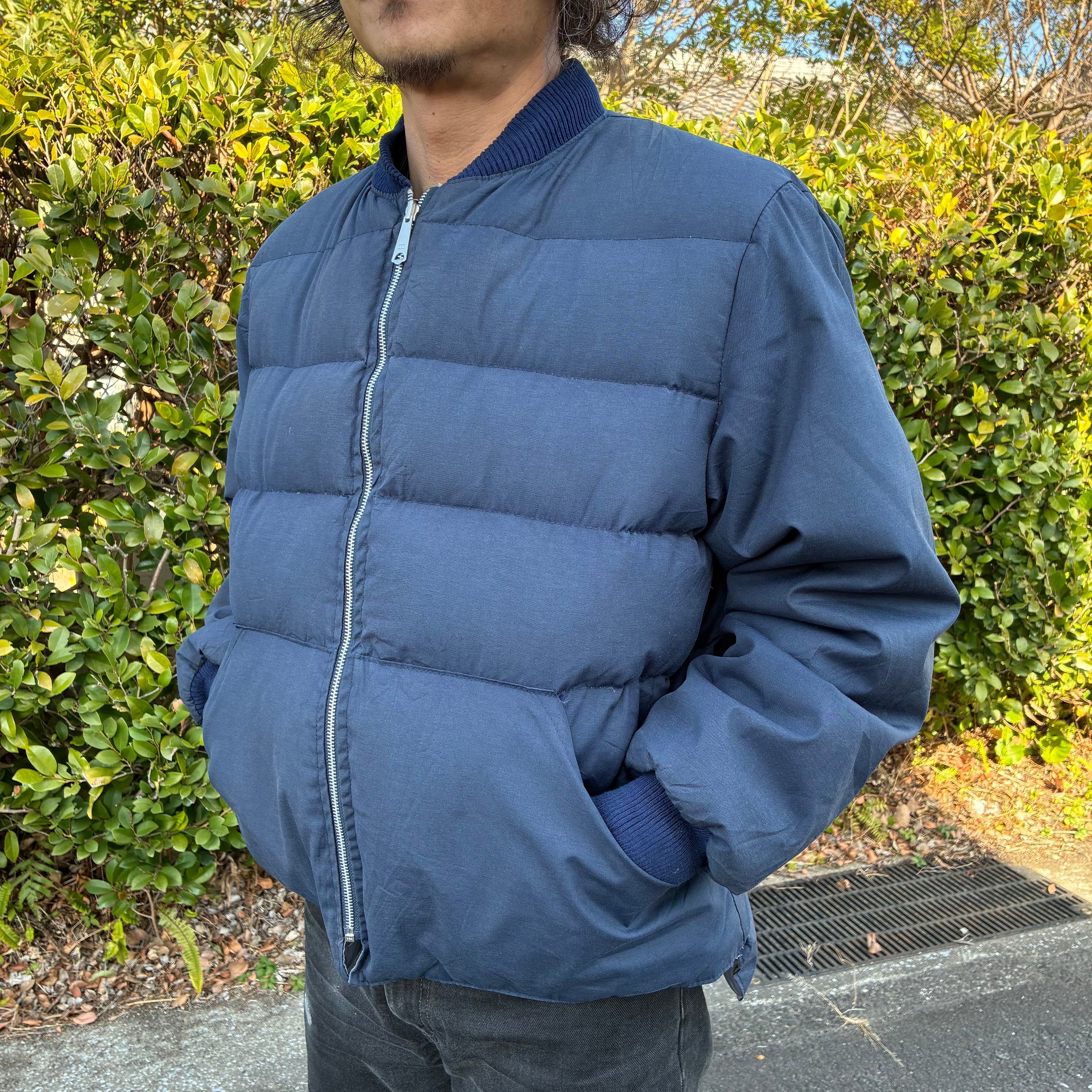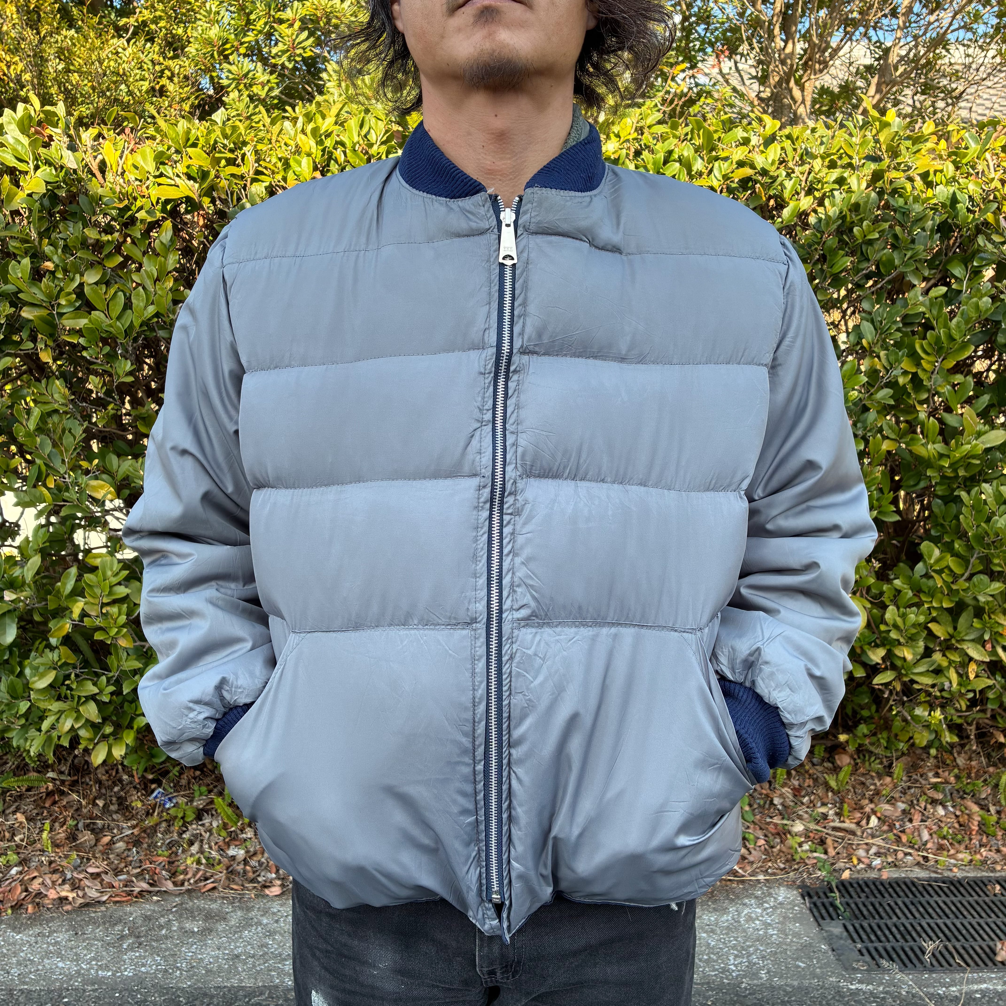 80s US古着 リバーシブル ダウンジャケット L ネイビー グレー / llbean