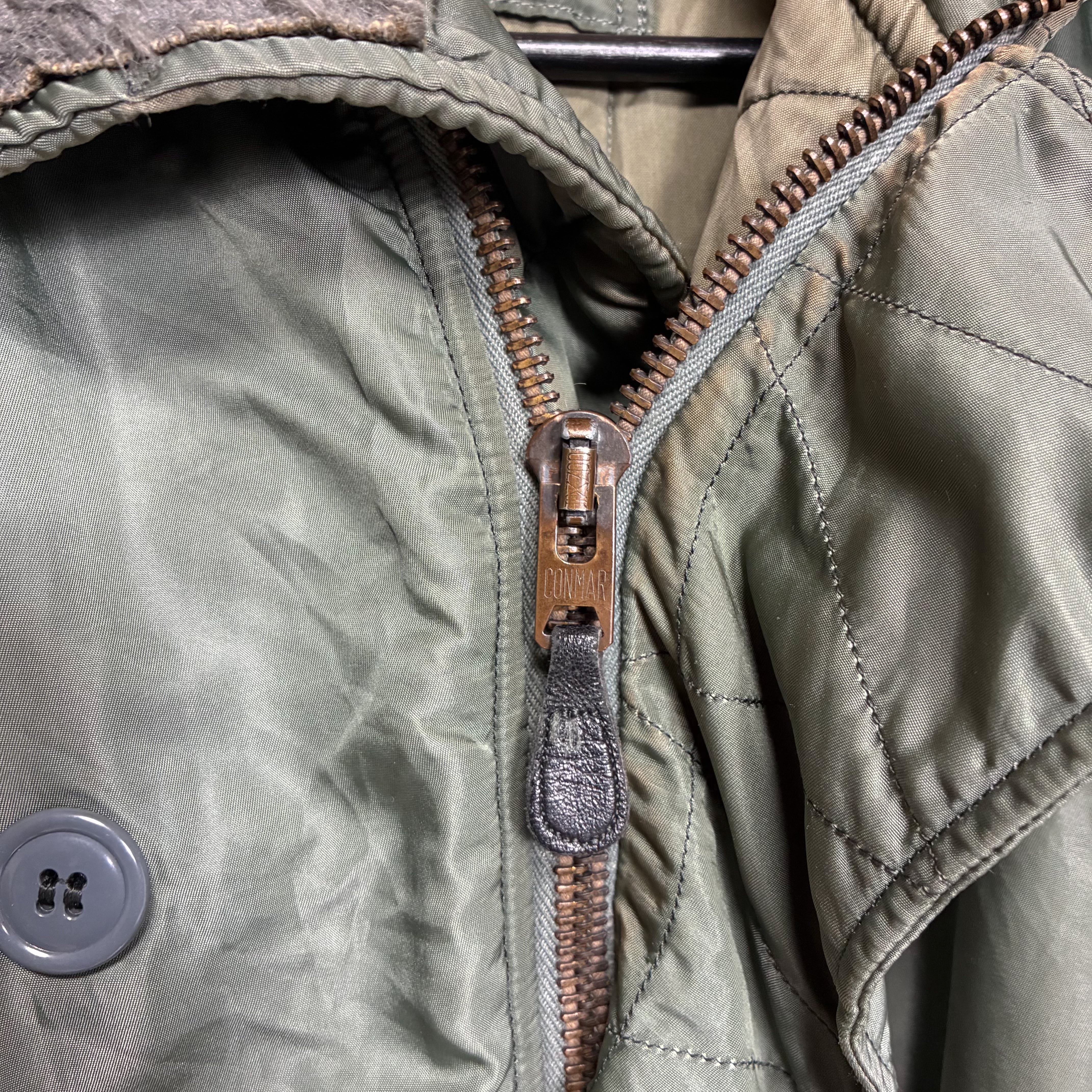 【Condition】汚れ箇所、スレダメージ、リブに少しダメージ、フード金具に経年、ファーが寝ている部分が背面から見てセンター右にございます。大きなダメージはなくまだまだご愛用いただけます。