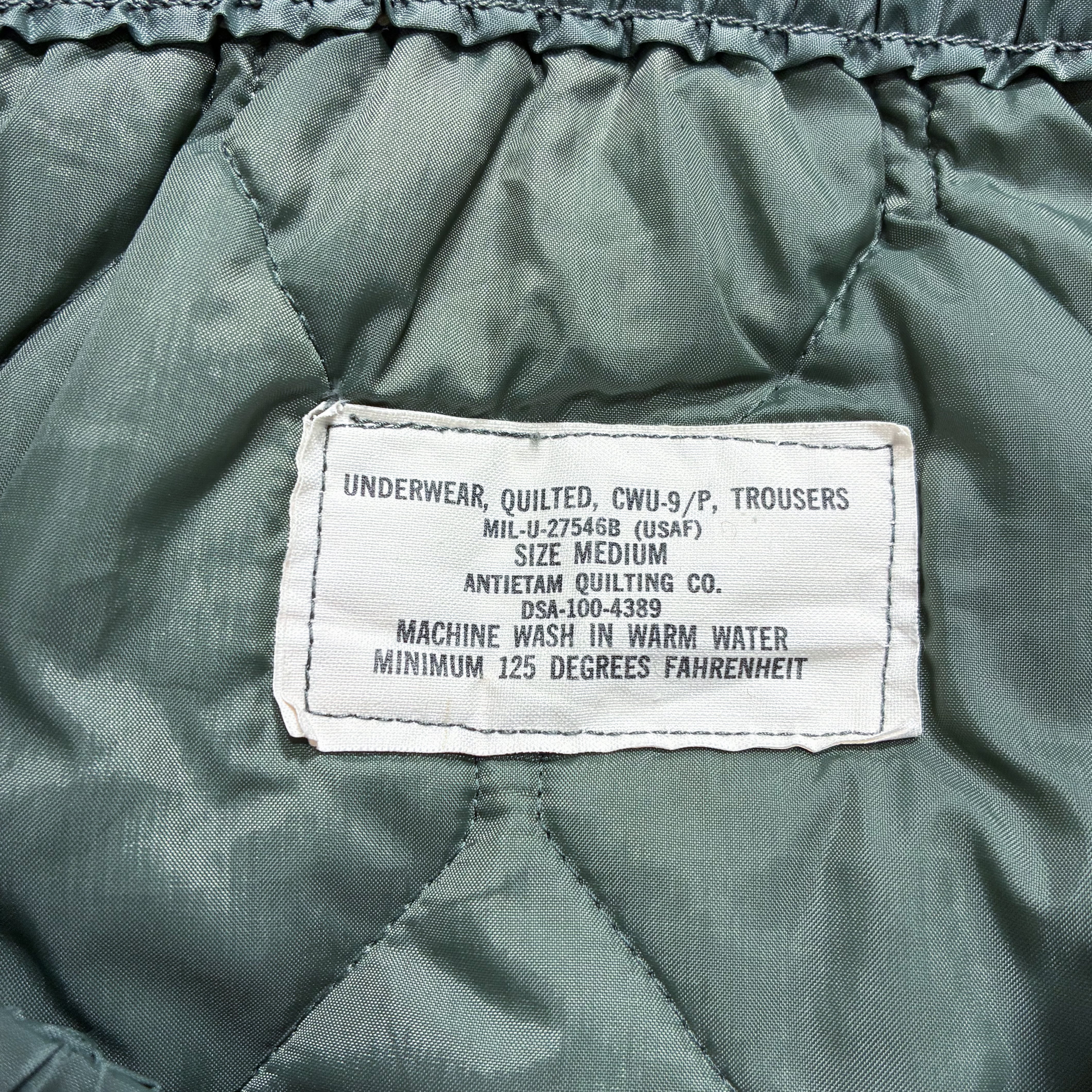 美品 60s 米軍 ダイヤステッチ CWU-9/P キルティング ライナーパンツ M エアフォース セージグリーン