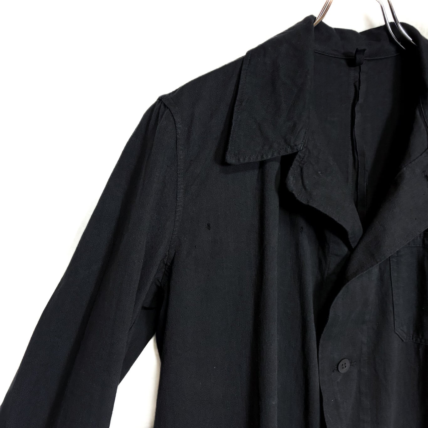 無骨なワークウェアらしい佇まいに、希少なブラックカラーが映える一着。