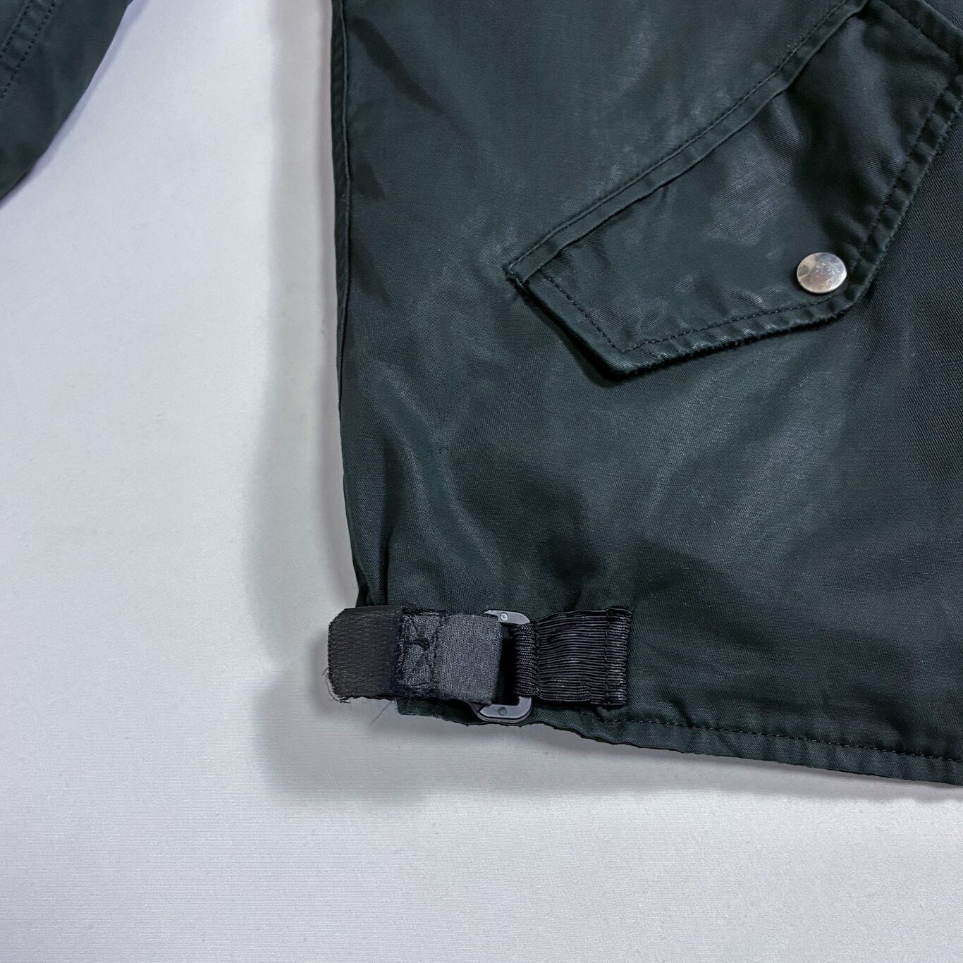 【Condition】右胸にワッペン取り外しの際についたキズ、右袖と左袖口リブにリペア、左ポケットフラップにスレキズございます。着用感ございますがその他ダメージなどはなくこれからも末永くご愛用いただけます。