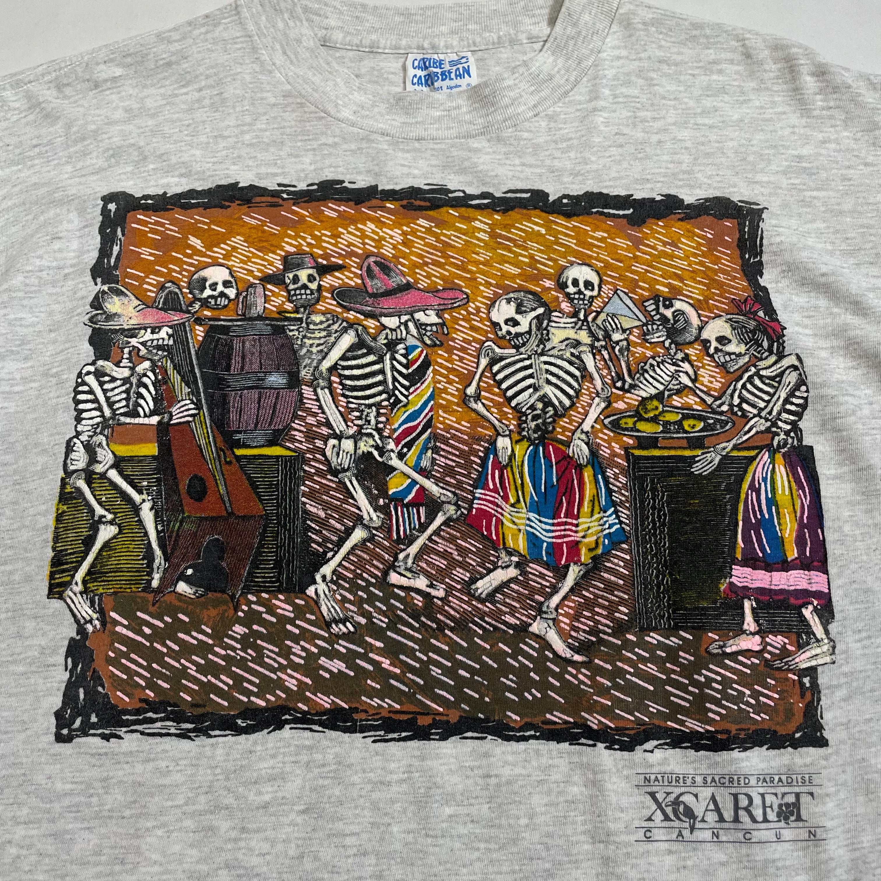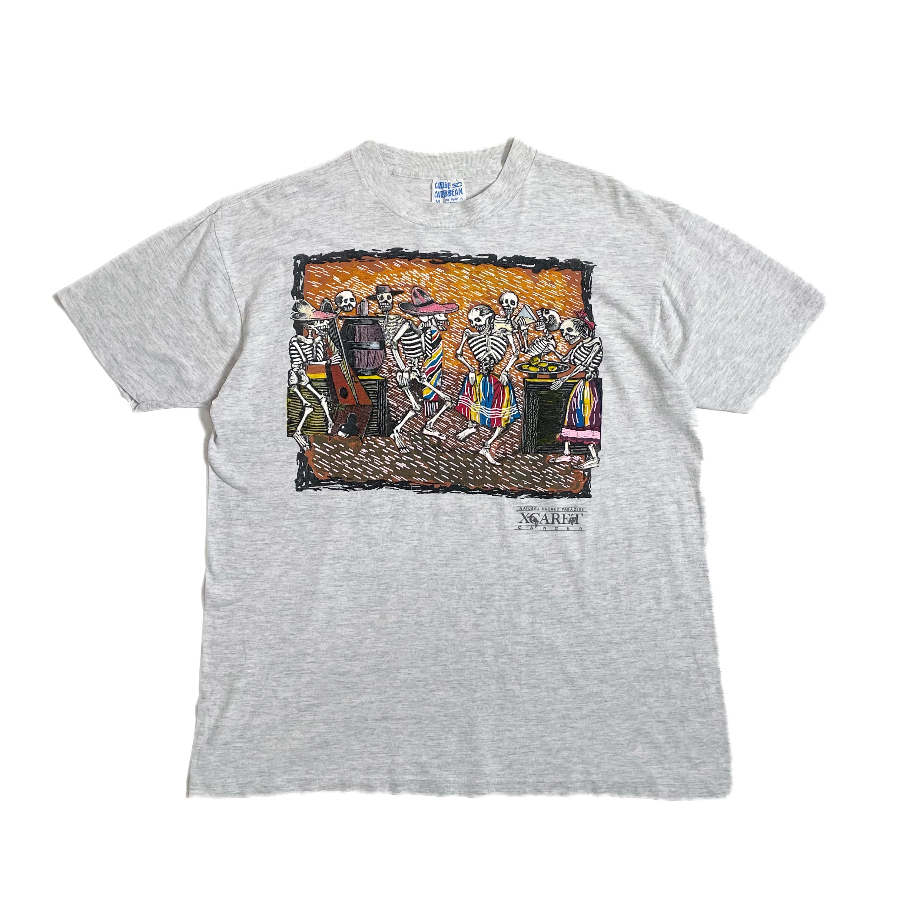 80s 90s CARIBE CARIBBEAN スカルアート 死者の日 柄 Tシャツ M ドクロ パーティー