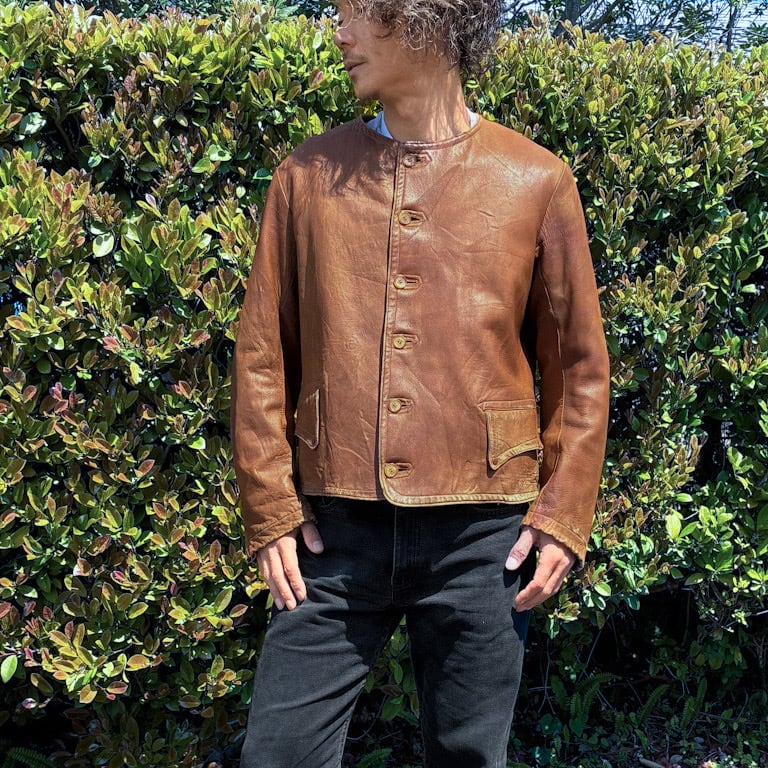 30s 40s UK Vintage イギリス レザー ワークジャケット L相当 短丈 モーターサイクル イギリス軍 フランス軍 エンジニア