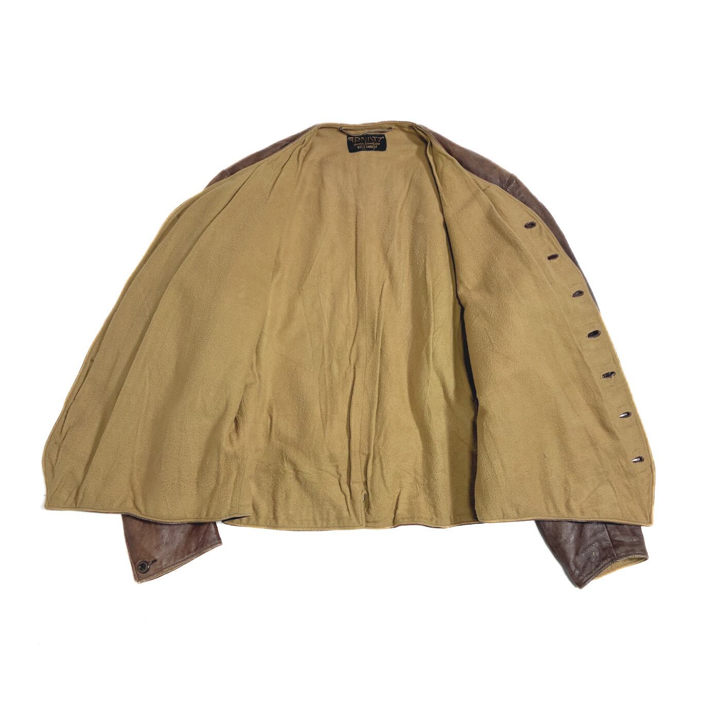 20s 30s スウェーデン製 ノーカラー レザー ジャケット L相当 ワークジャケット 短丈 モーターサイクル イギリス軍 エンジニア