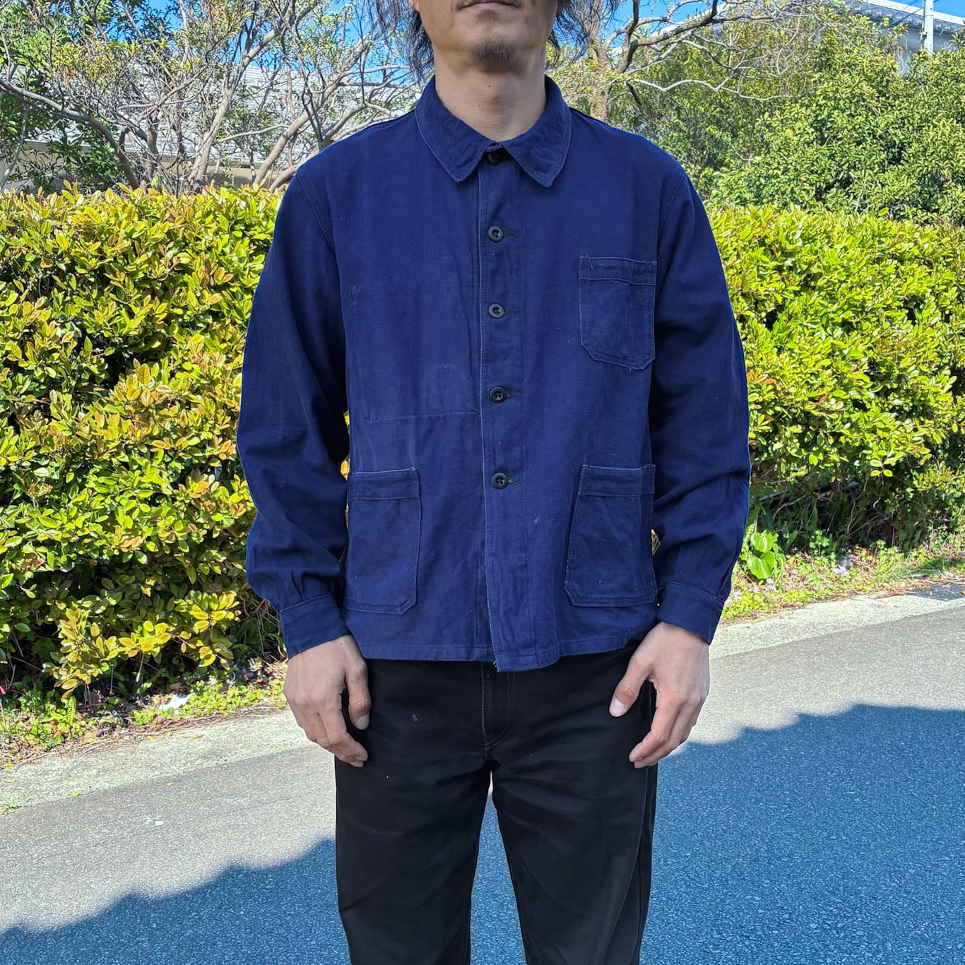 60s フランスヴィンテージ ワークジャケット カバーオール ナス紺 ユーロ フレンチ 40s 50s