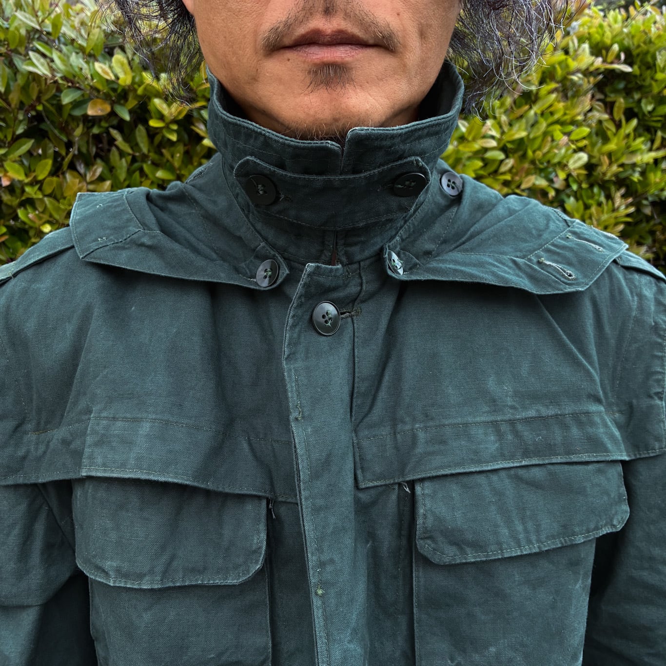 無駄を削ぎ落としたシンプルな作りながら、しっかりとミリタリーらしい機能美を感じる一着です。