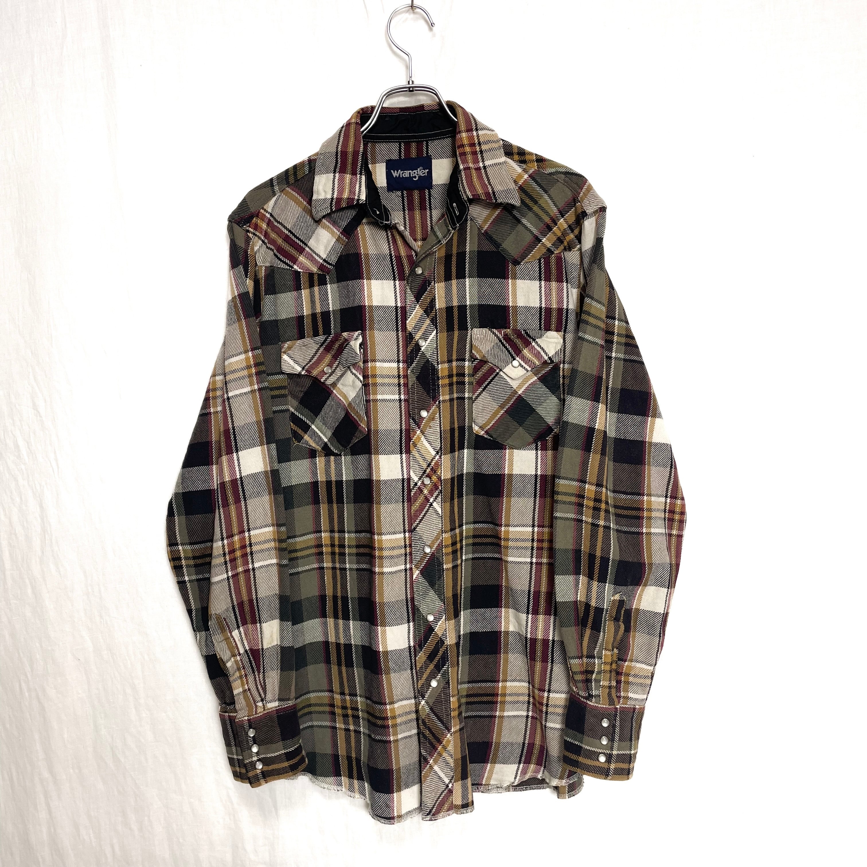 90s Wrangler ラングラー ウエスタンシャツ ネルシャツ スナップボタン チェックシャツ L XL