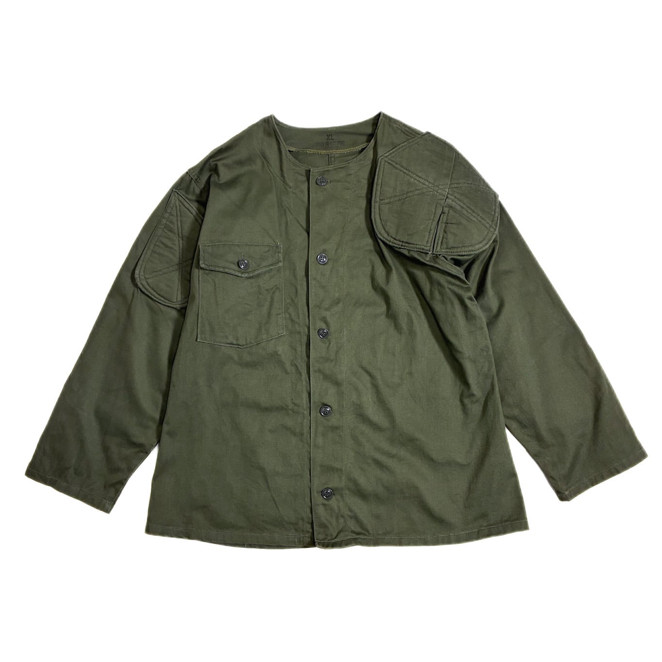 ノーカラーにライフルパッドが付いたシューティングジャケットらしい独特なデザイン。