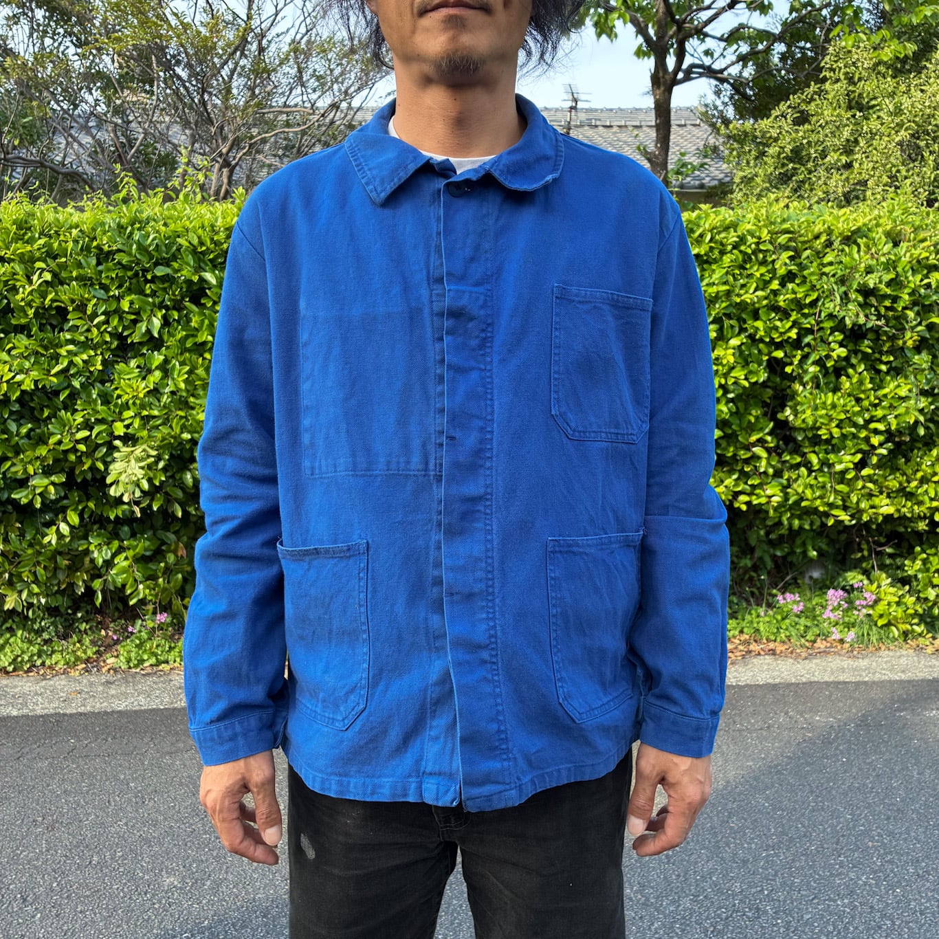 70s ユーロ ヴィンテージ ワークジャケット L相当 ブルー カバーオール フレンチ ユーロ ヨーロッパ モールスキン