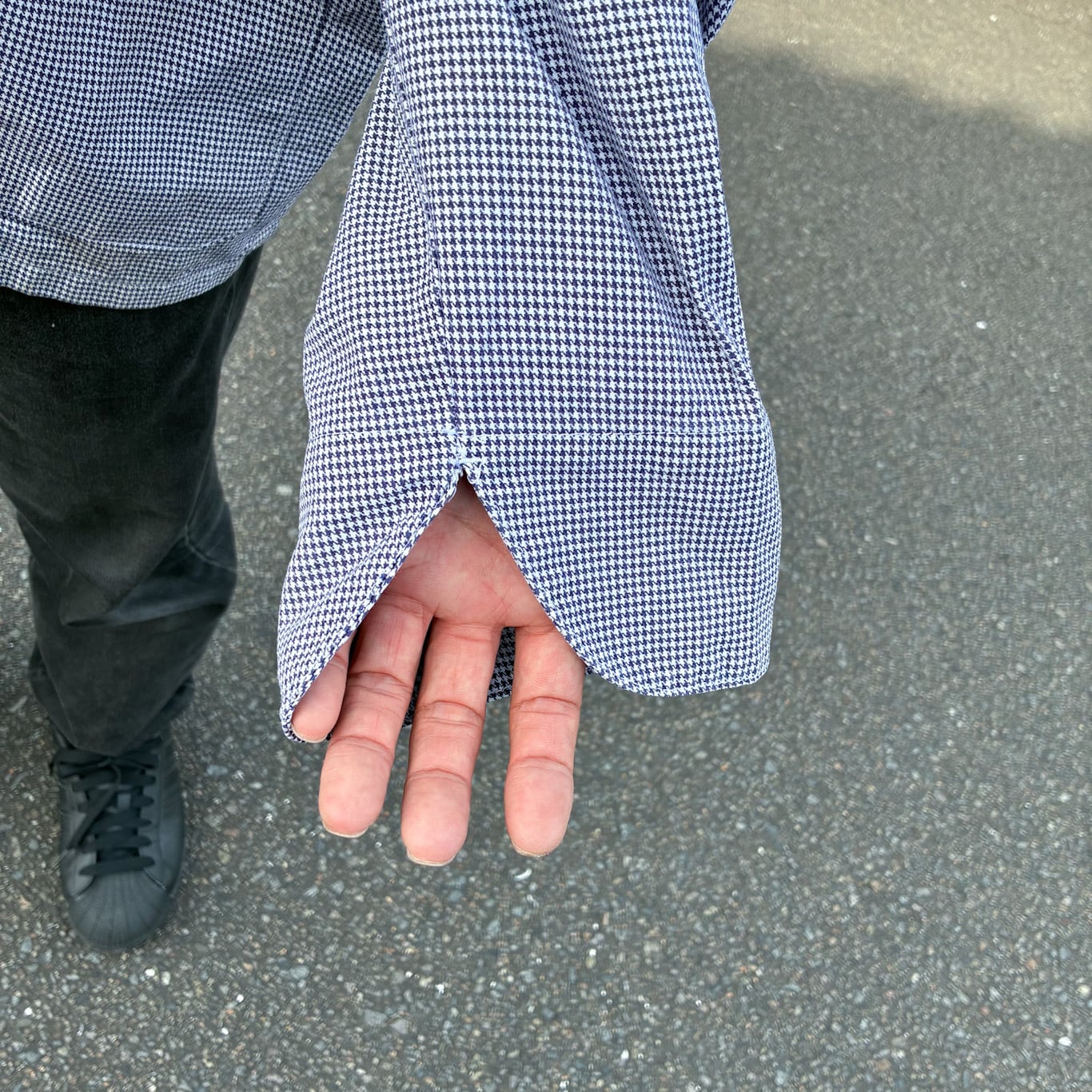 クラシックな千鳥格子柄が目を引く、雰囲気抜群の一着です。