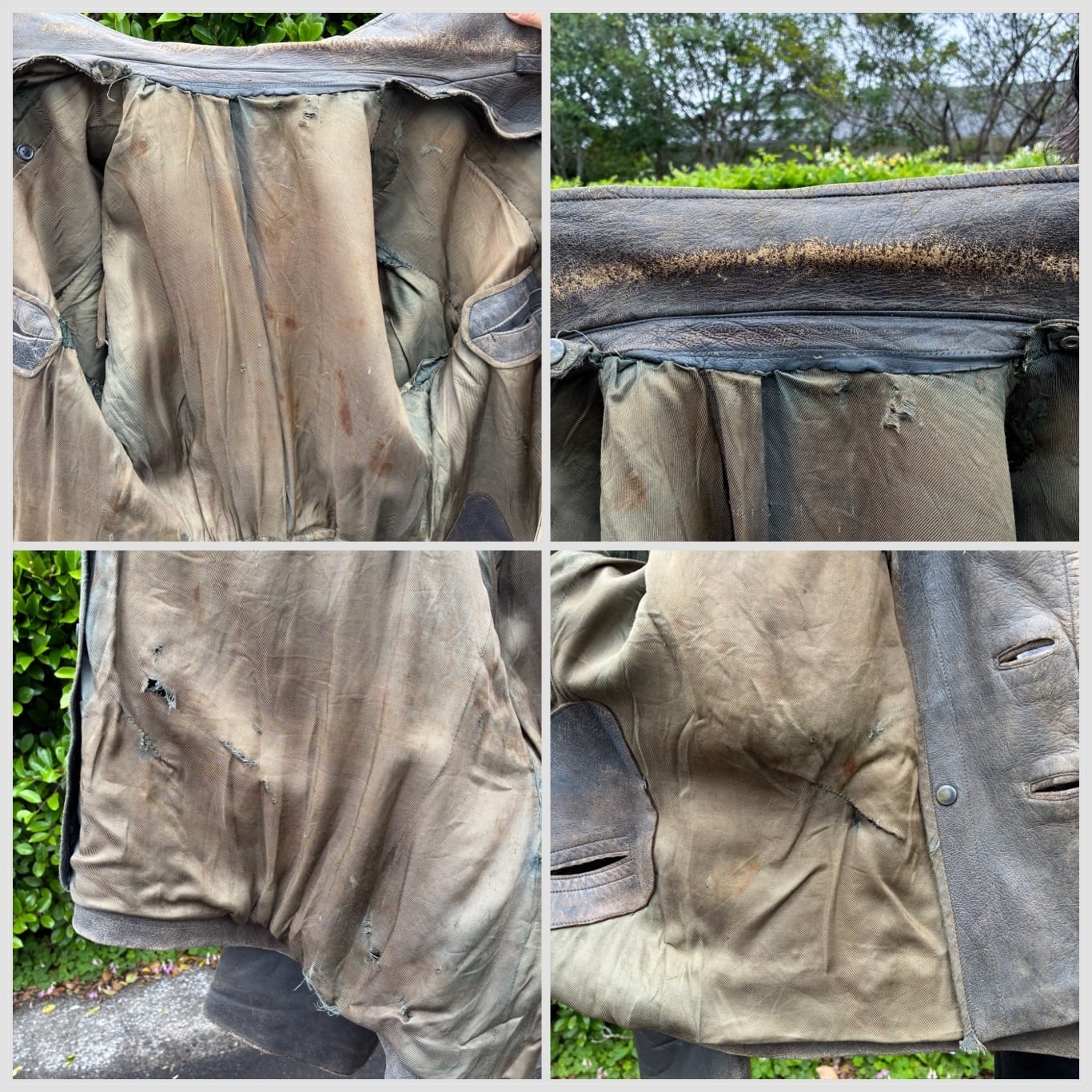 【Condition】レザー特有のスレキズ、小キズ、裏地にダメージ、リペアございます。その他ダメージなく着用可能です。