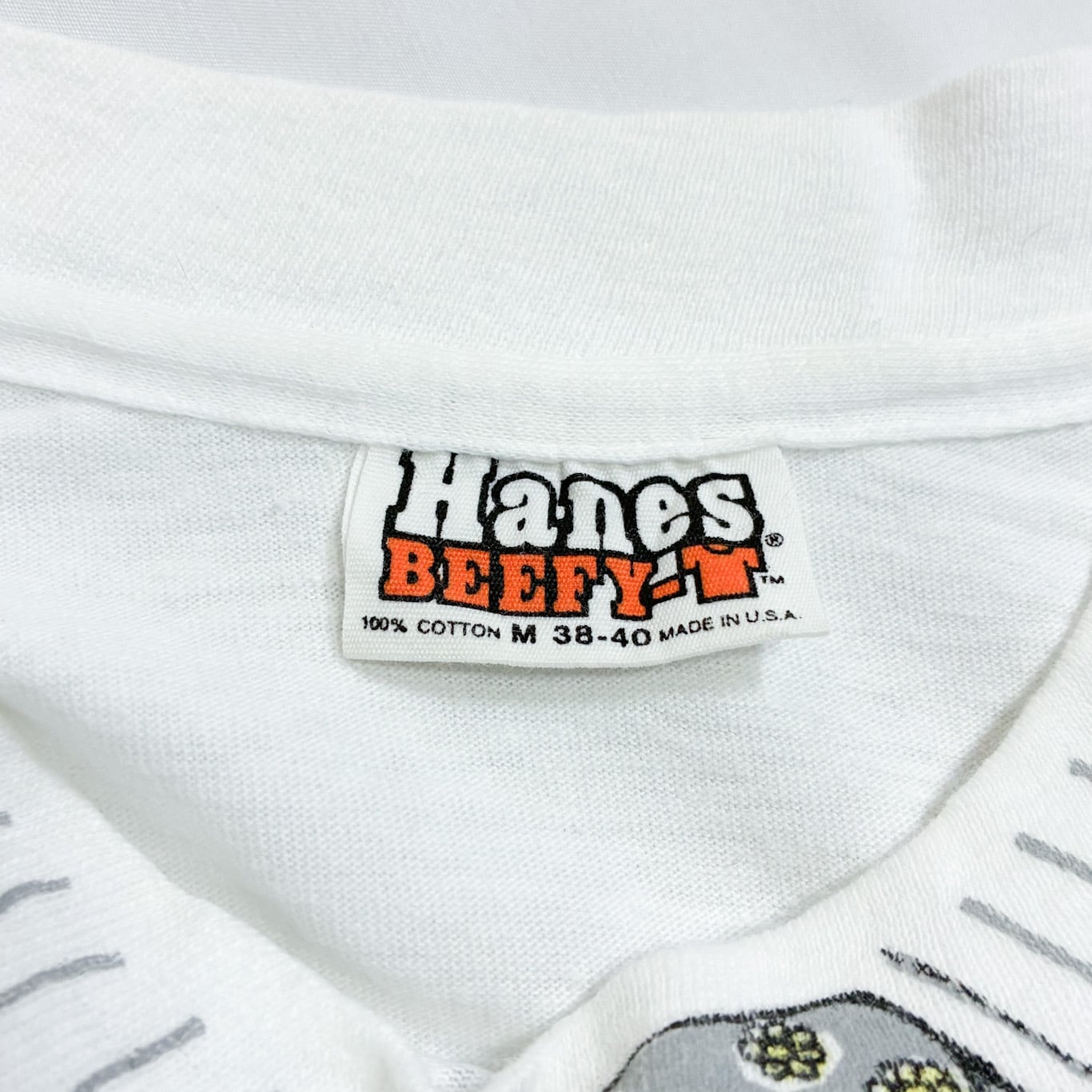 90s USA製 Hanes スーツ 会社員 ネクタイ プリント Tシャツ M