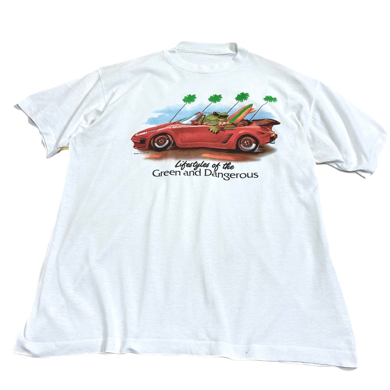 90s ヴィンテージTシャツ 車 ワニ サーフィン 片面プリント XL相当