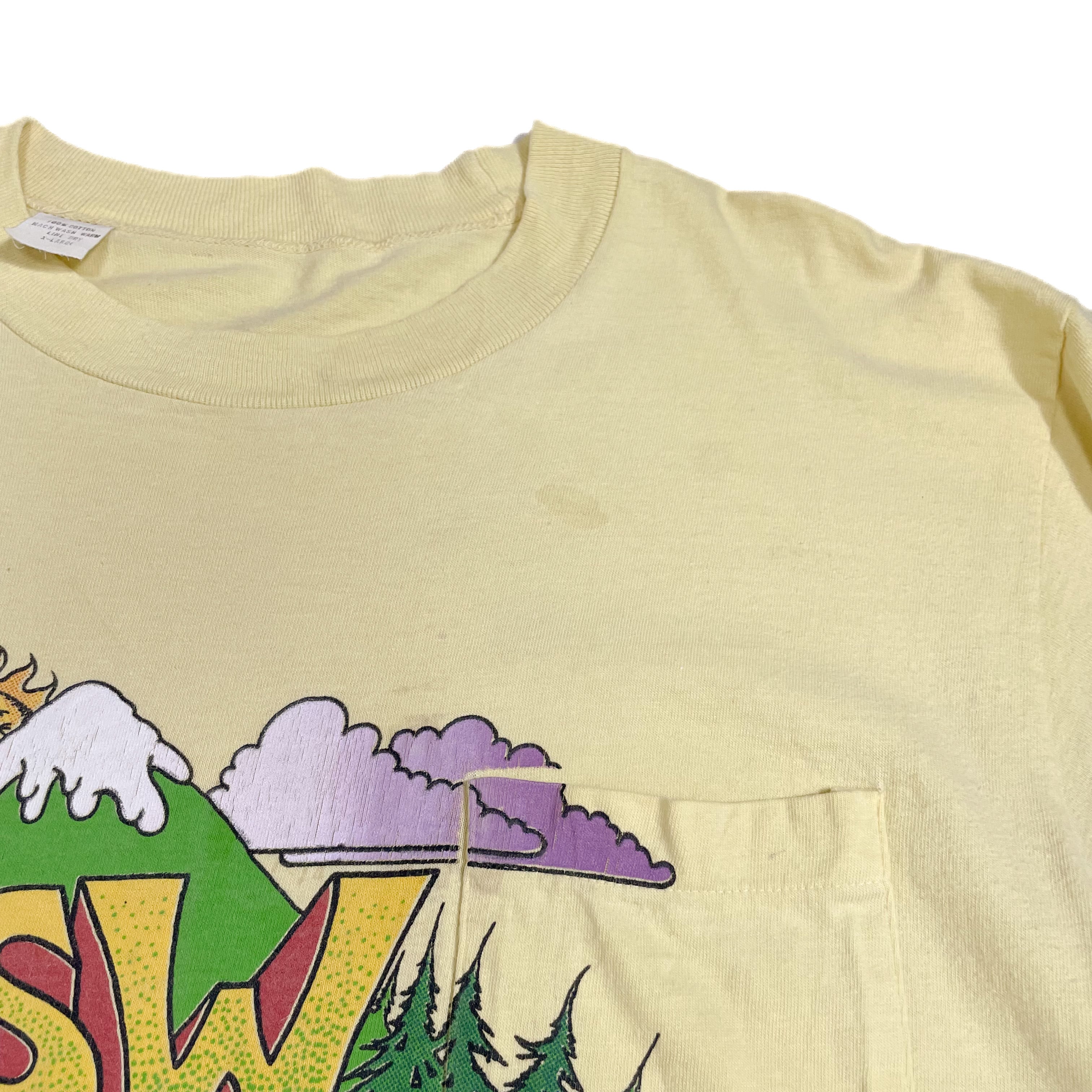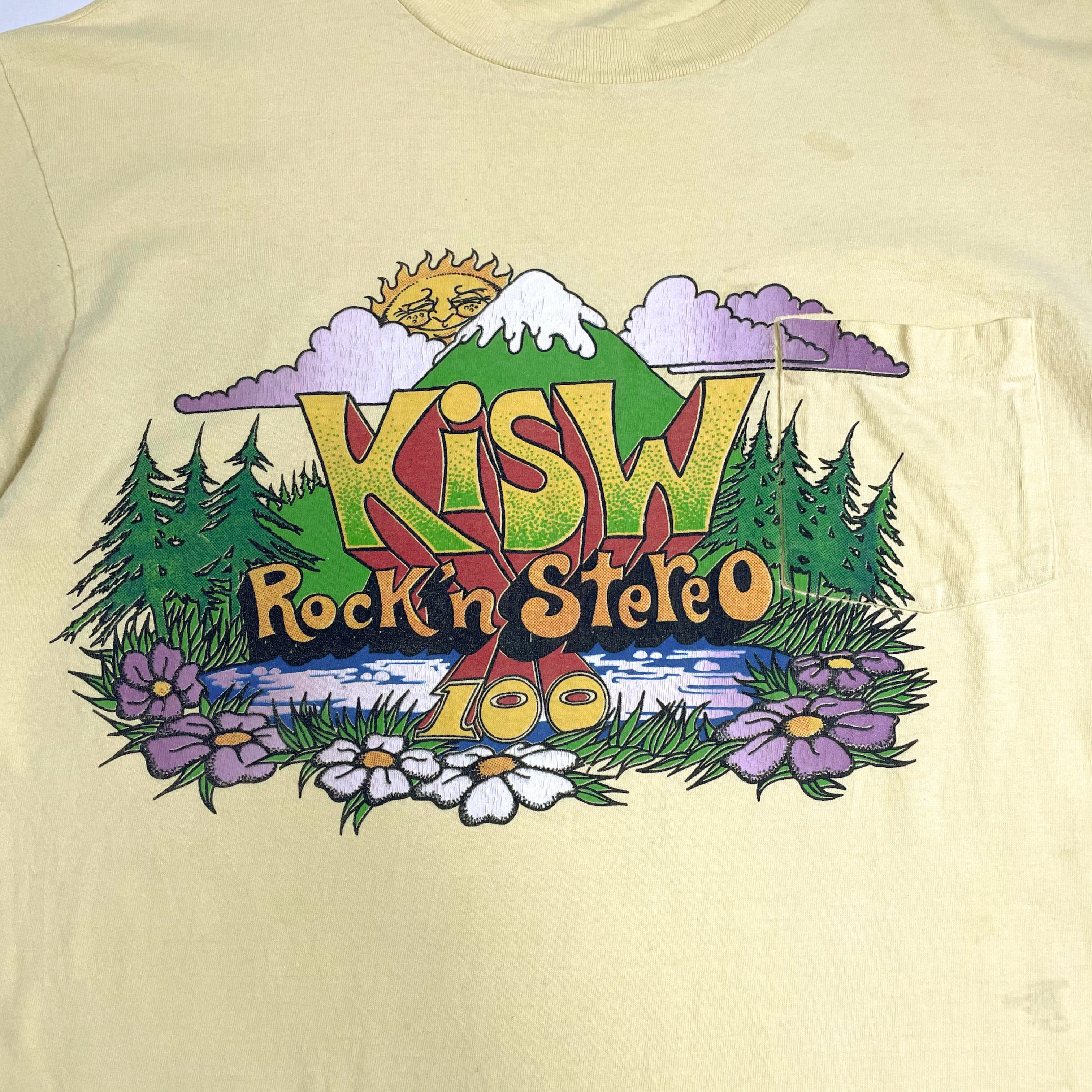 希少 80s KISW シアトル ラジオ局 ヴィンテージTシャツ ポケT 黄