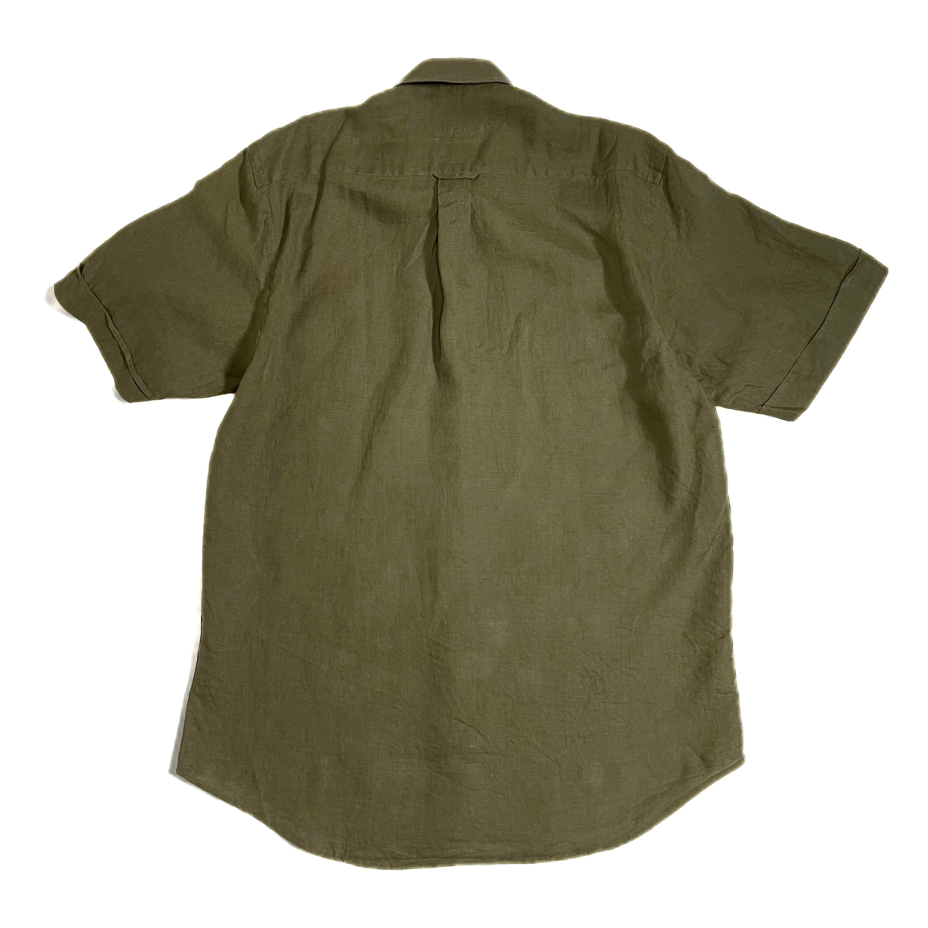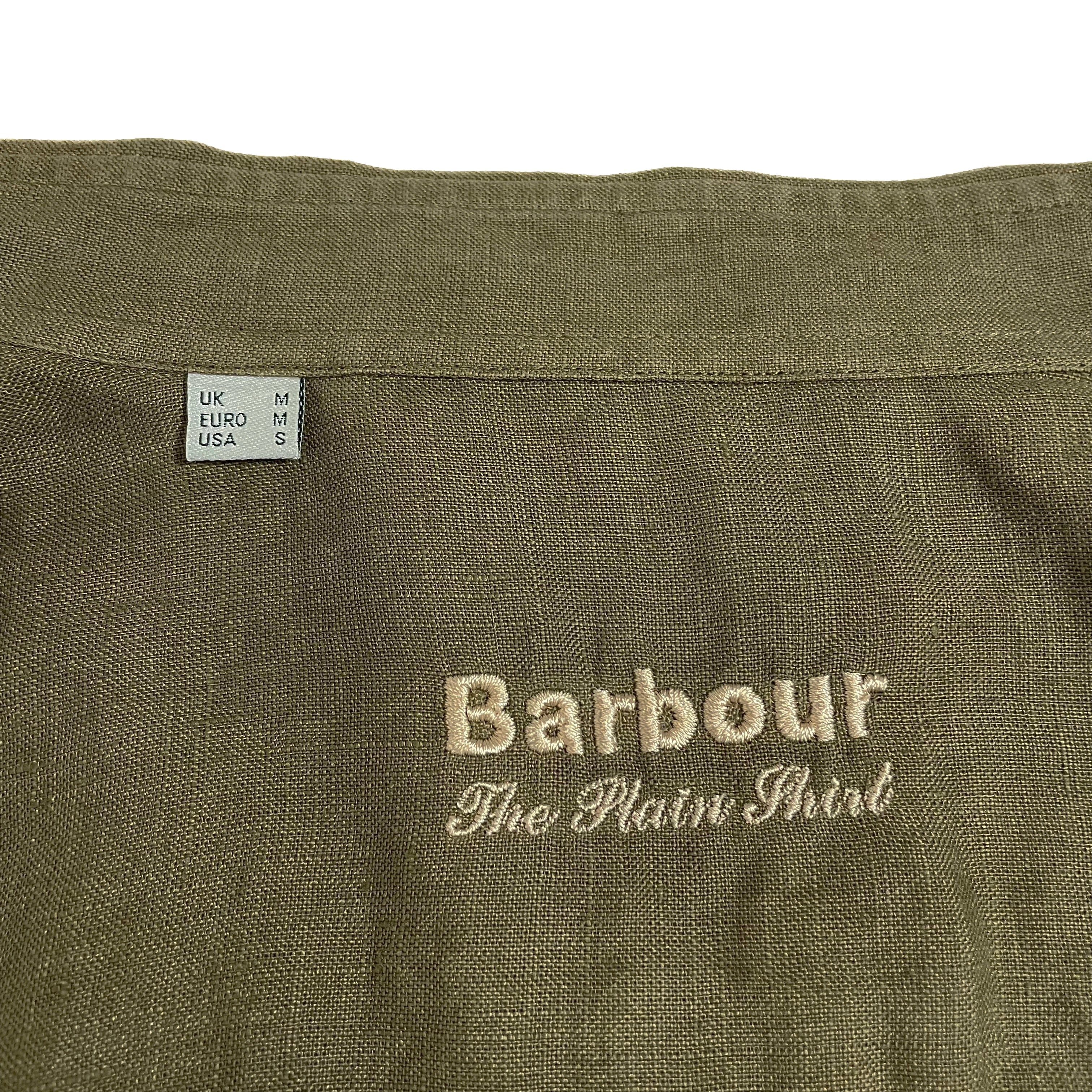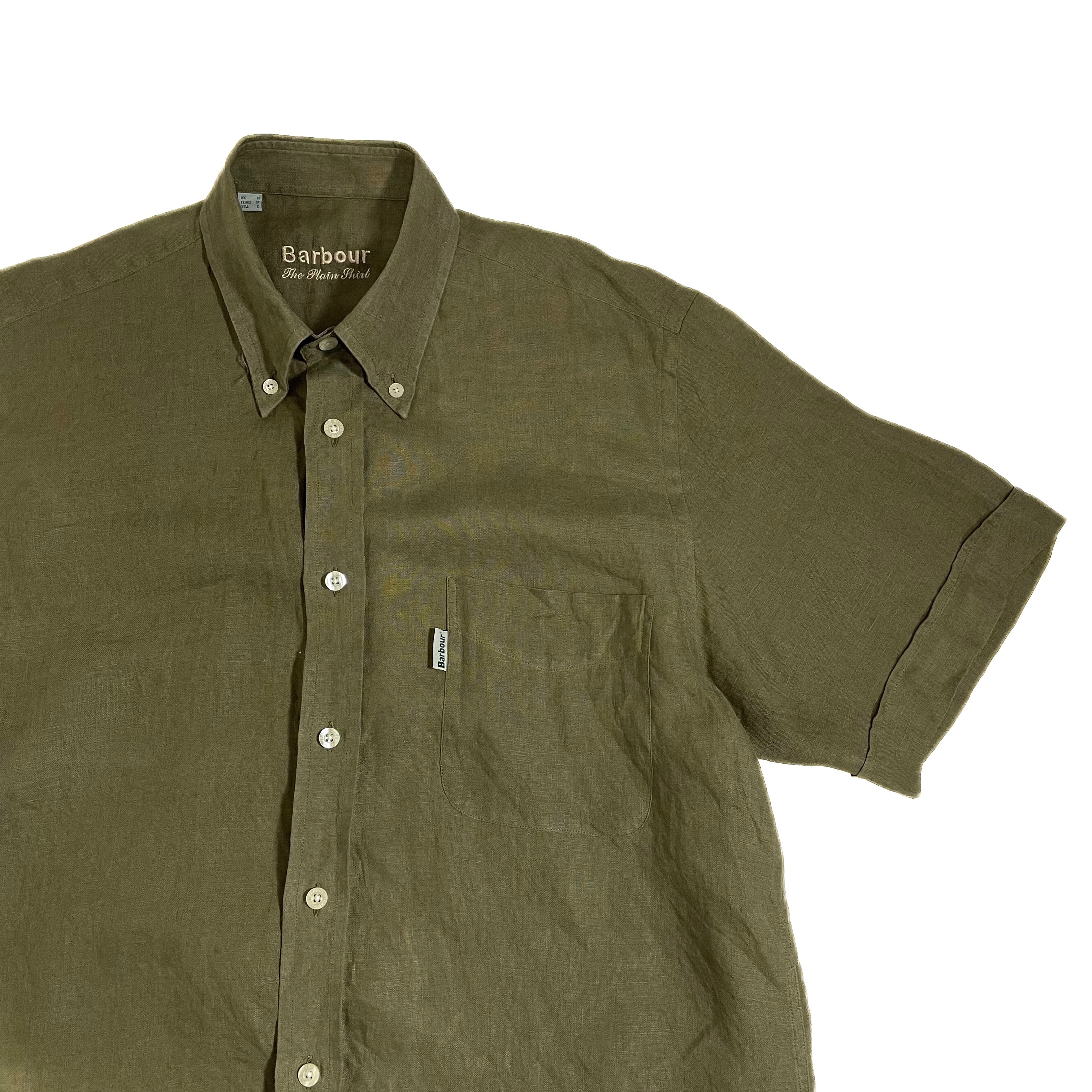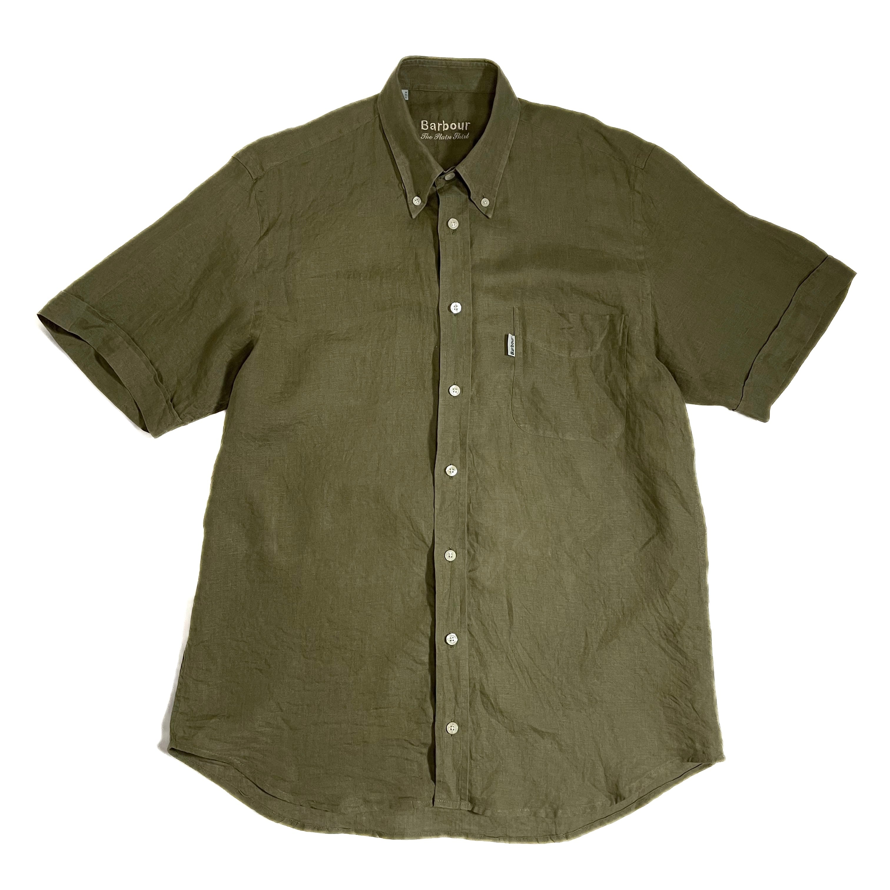良色 Barbour バブアー リネンシャツ M カーキ 半袖シャツ