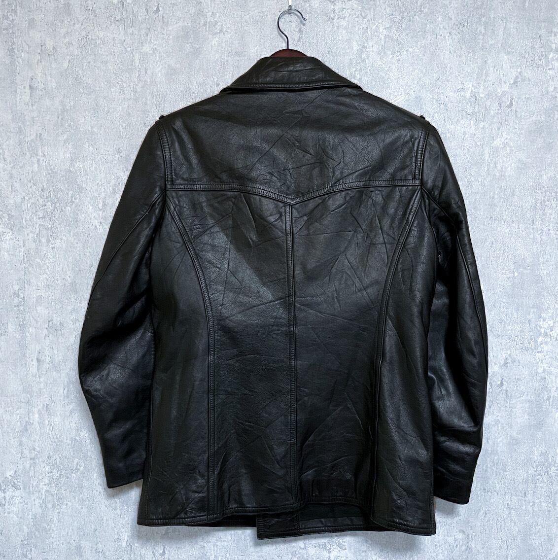 80s ドイツ警察 希少 ワッペン付き ポリスマン レザー コート ブラック M相当 ライダース ドイツ軍 カーコート 旧車 単車