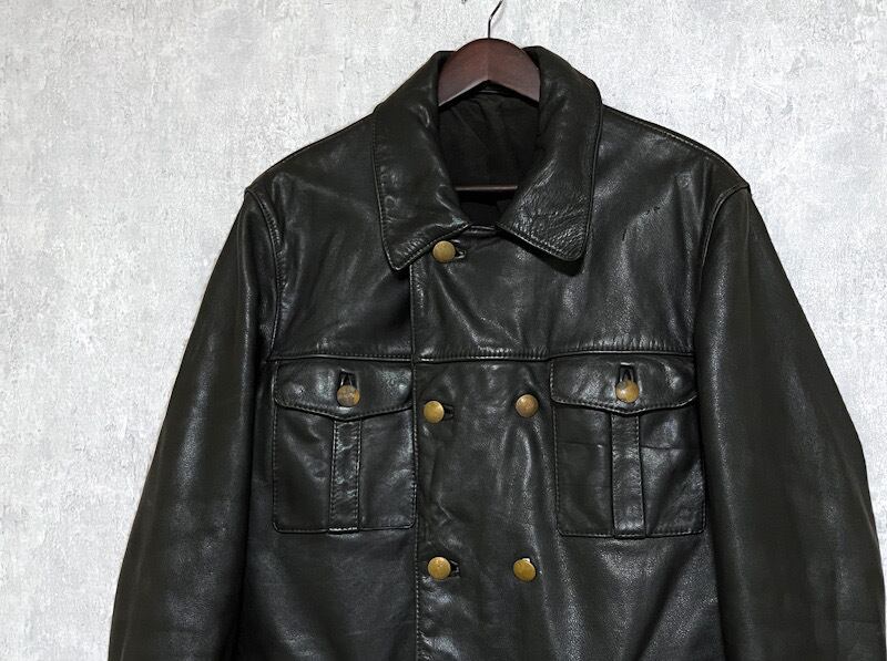 50s 60s ドイツ ポリスマン レザー コート ブラック ライダース ヴィンテージ ドイツ軍 カーコート ナチス 旧車 単車