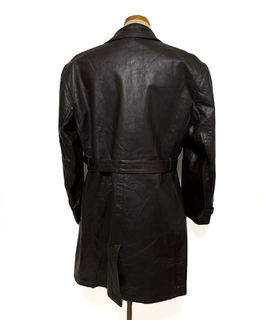50s ユーロ ヴィンテージ レザー ロングコート ダークブラウン ミリタリー ジャケット