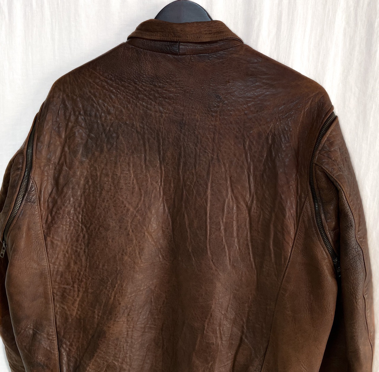 【Condition】 レザー特有のスレキズ、やや汚れ、裏地にややダメージあり。着用感ございますが大きなダメージなくまだまだご愛用いただけます。
