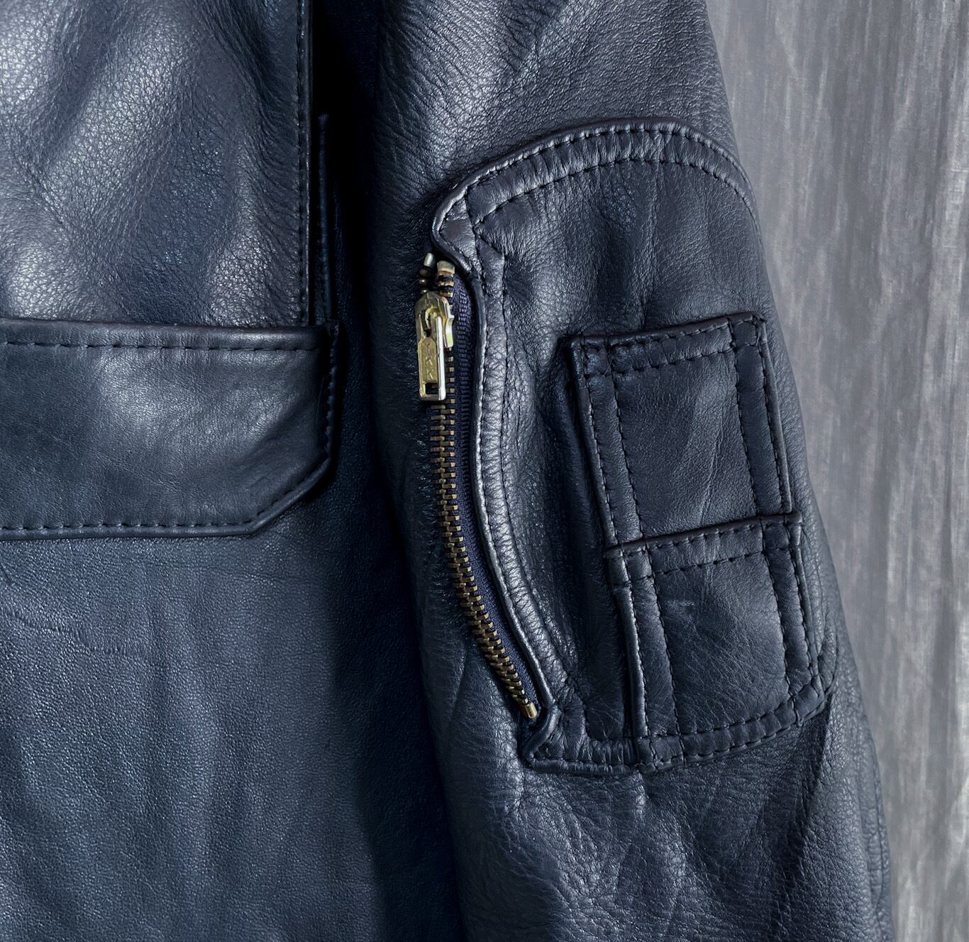 フランス軍 パイロット レザー フライトジャケット XL ネイビー 空軍