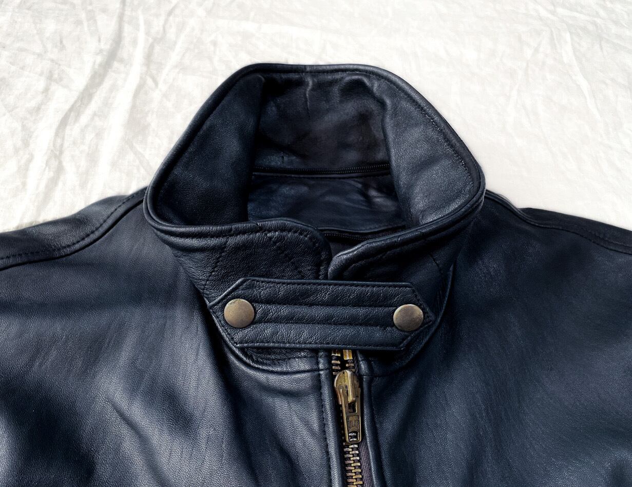 しなやかなシープスキンレザー、襟元にチンストラップが付きます。