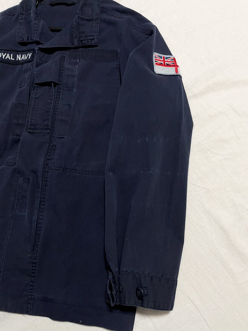 イギリス軍 コンバット ワッペン付き ジップアップ シャツ ジャケット 170 ネイビー