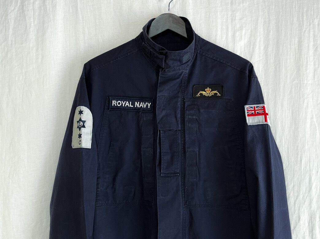 良品 イギリス軍 コンバット ワッペン付 ジップアップ シャツ ジャケット 190 ネイビー