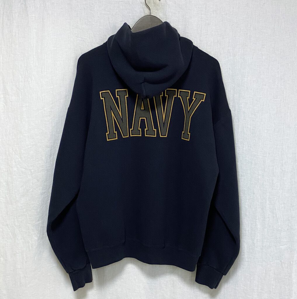 米軍 実用 リフレクター 両面プリント ミリタリー スウェット パーカー L ネイビー