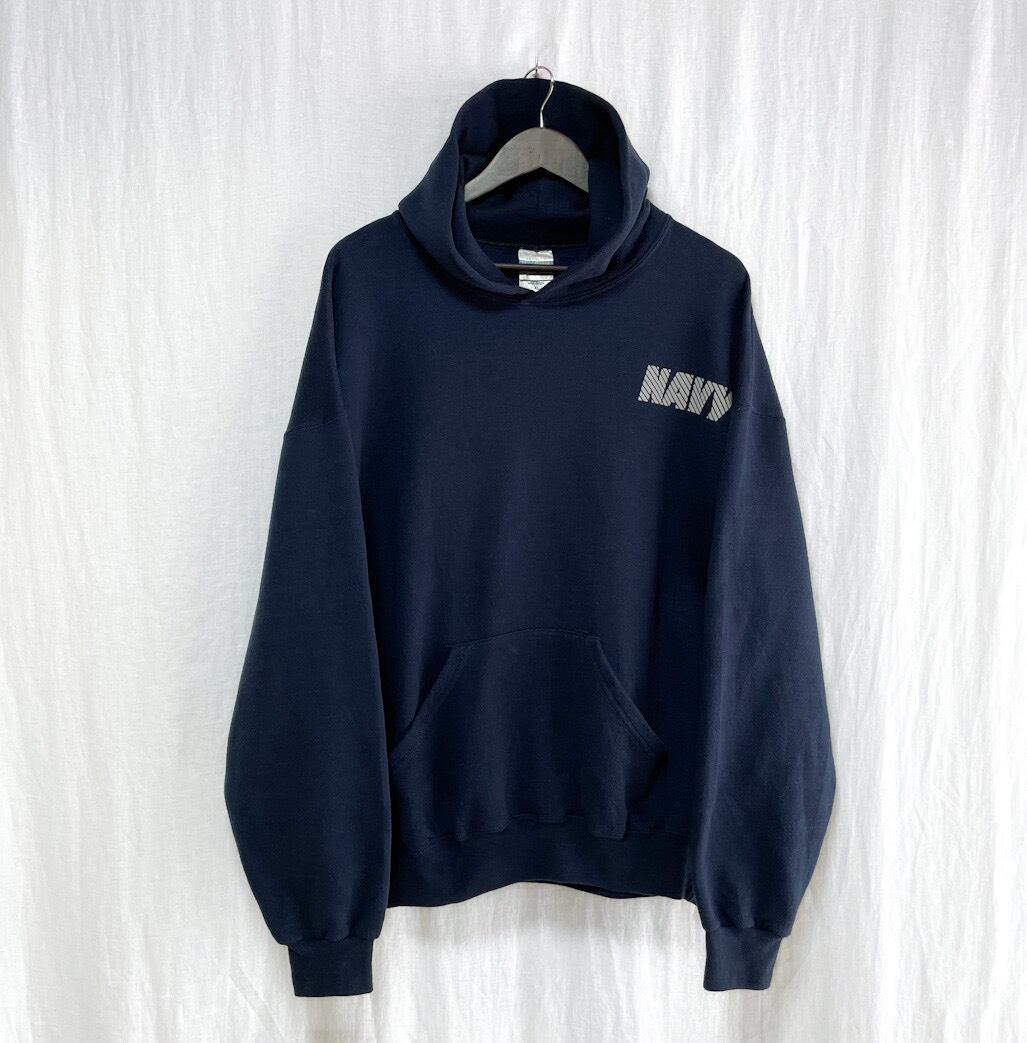 美品 米軍 実用 両面プリント リフレクター ミリタリー スウェット パーカー XL ネイビー トレーナー SOFFE社 USA製